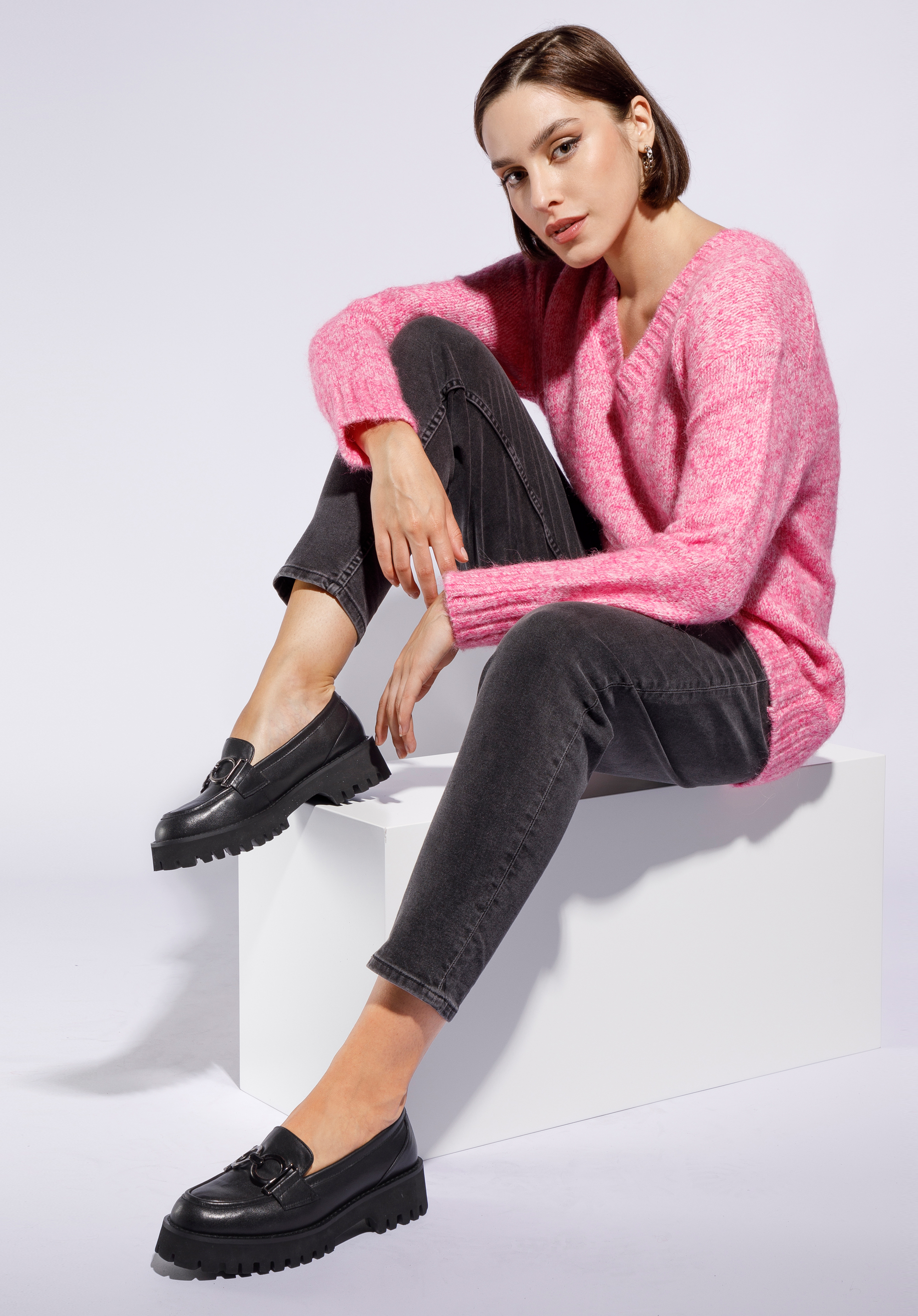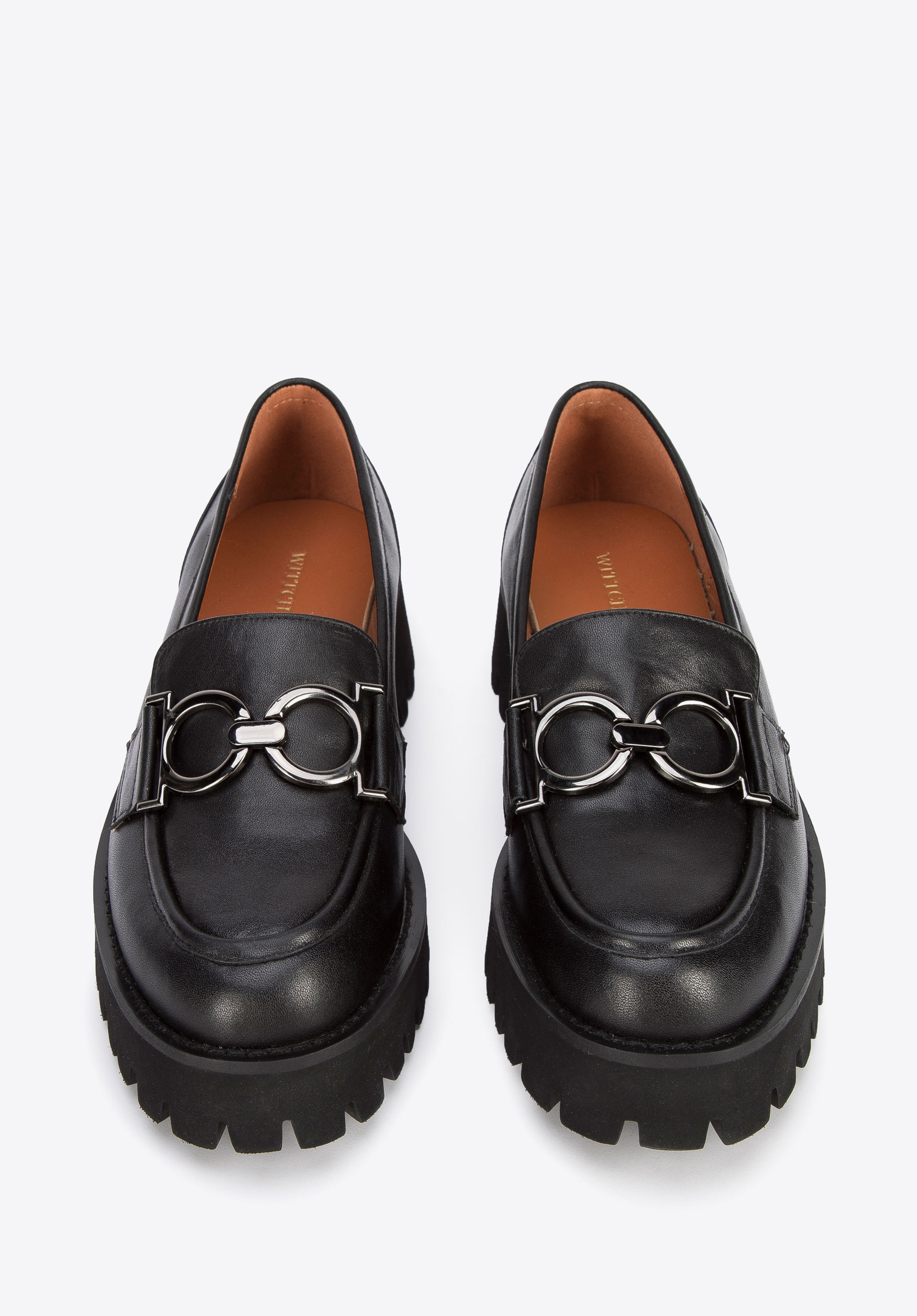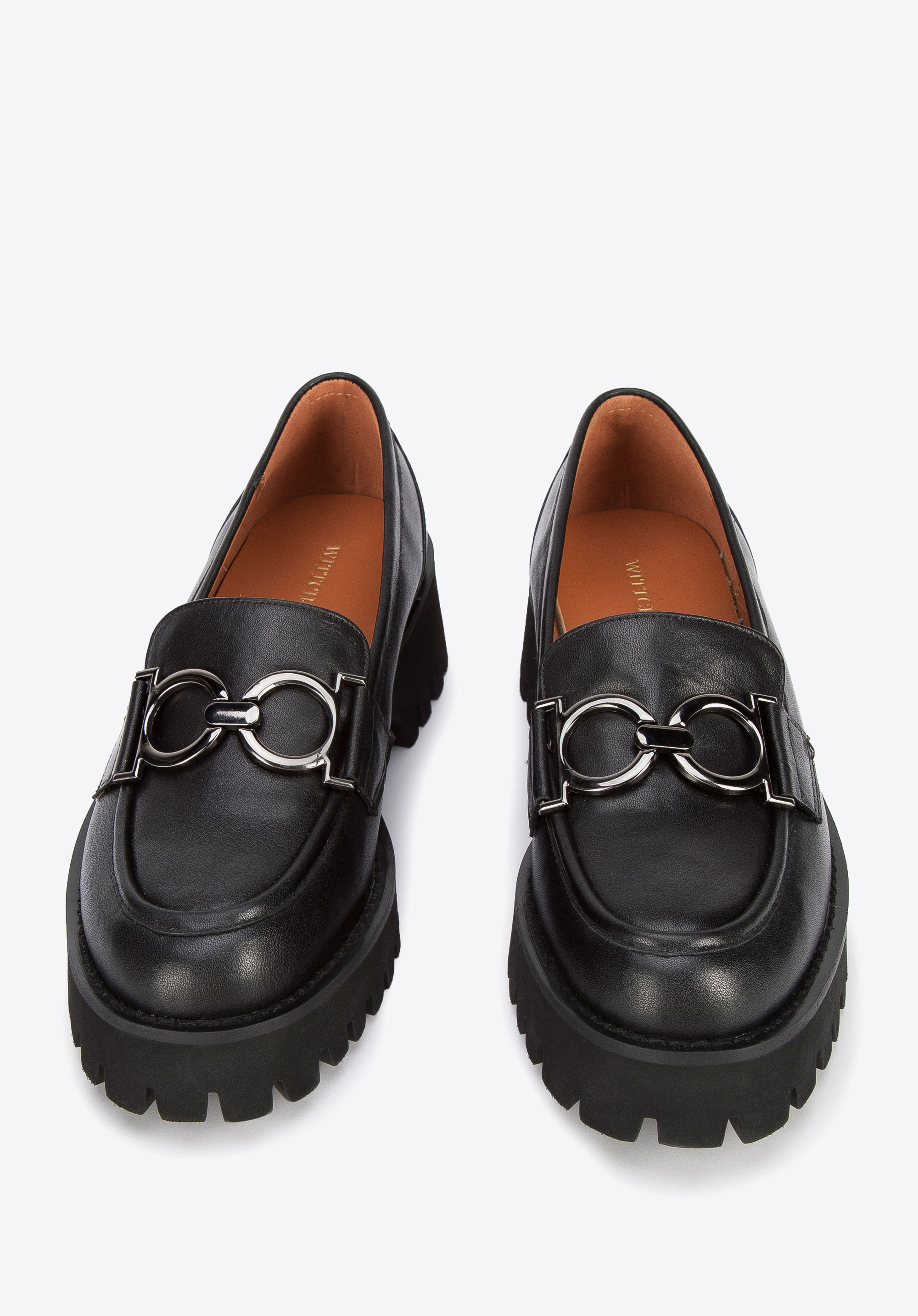 Diese stilvollen Mokassins sind ein zeitloses Accessoire, das viele Jahreszeiten lang modisch sein wird. Sie sind aus hochwertigem Naturleder gefertigt und sind mit der großen Metallschnalle verziert. Die Schuhe haben die charakteristische abgeschnittene Spitze und die schlanke Form. Die Plateausohle mit Profil ist dick, aber leicht, so dass Sie in ihnen bequem durch den Tag kommen. Darüber hinaus sorgen die Innensohle aus Ziegenleder und das weiche Futter für den Komfort Ihrer Füße. Tragen Sie sie zum Beispiel zu einer knöchellangen Hose oder einem luftigen Kleid - sie werden Ihr Outfit in jeder Situation stilvoll ergänzen. Die Mokassins aus Leder mit Schnalle auf dicker Sohle sind elegante Schuhe für viele Gelegenheiten.