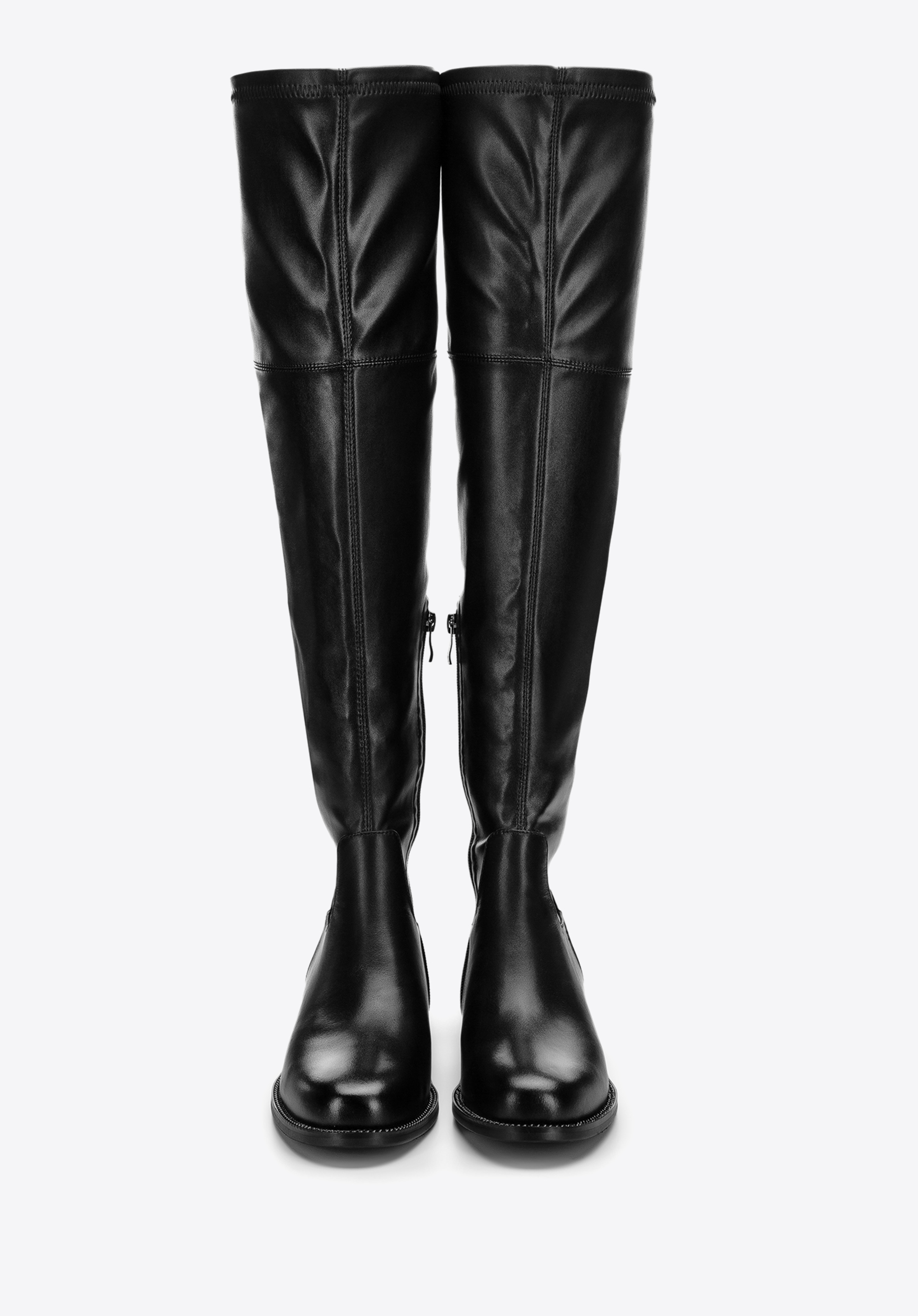 Diese Stiefel sind sicherlich einer der elegantesten Schnitte von Damenschuhen für Herbst und Winter. Sie sind aus hochwertigem Naturleder gefertigt. Dieses Modell hat den elastischen Schaft aus Öko-Leder, der sich perfekt an Ihre Wade anpasst. Außerdem haben sie die weiche Innensohle und reichen bis zum Knie, damit Sie warm und bequem zugleich sind. Overknee-Stiefel aus Leder für Damen sind die Schuhe, die Sie jahrelang tragen können.