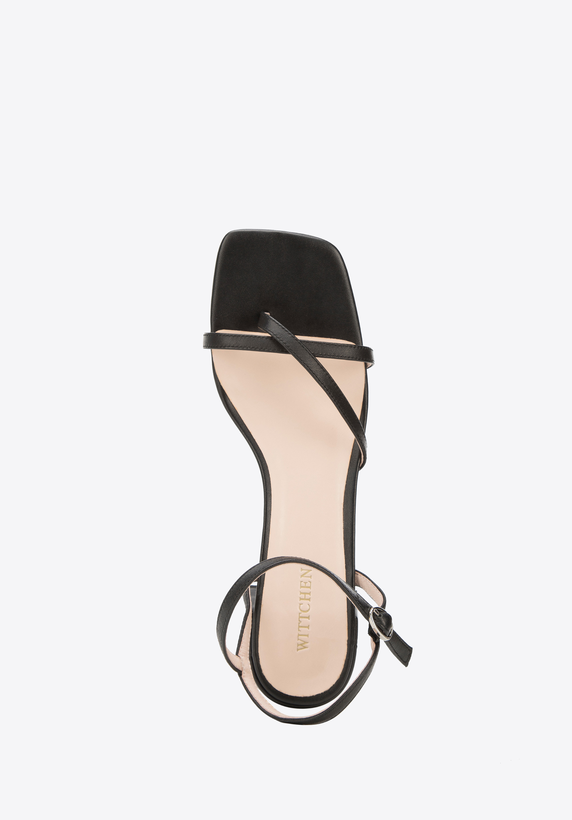 Diese Sandaletten im minimalistischen Stil sind ein einzigartiges Accessoire für den Sommer. Die dünnen Riemen betonen die schlanken Linien des Fußes. Dieses Modell hat den Riemen zwischen den Zehen - wie Flip Flops. Die Sandaletten werden mit der Schnalle geschlossen. Der bequeme, niedrige Absatz ist für stundenlange Spaziergänge geeignet. Die Damenschuhe sind aus hochwertigem Naturleder gefertigt. Sie passen perfekt sowohl zu einem kleinen schwarzen Kleid als auch zu Shorts und einem T-Shirt. Die Sandaletten für Damen aus Leder mit dünnen Riemen sind die perfekte Wahl für Frauen, die zeitlose Accessoires mögen.
