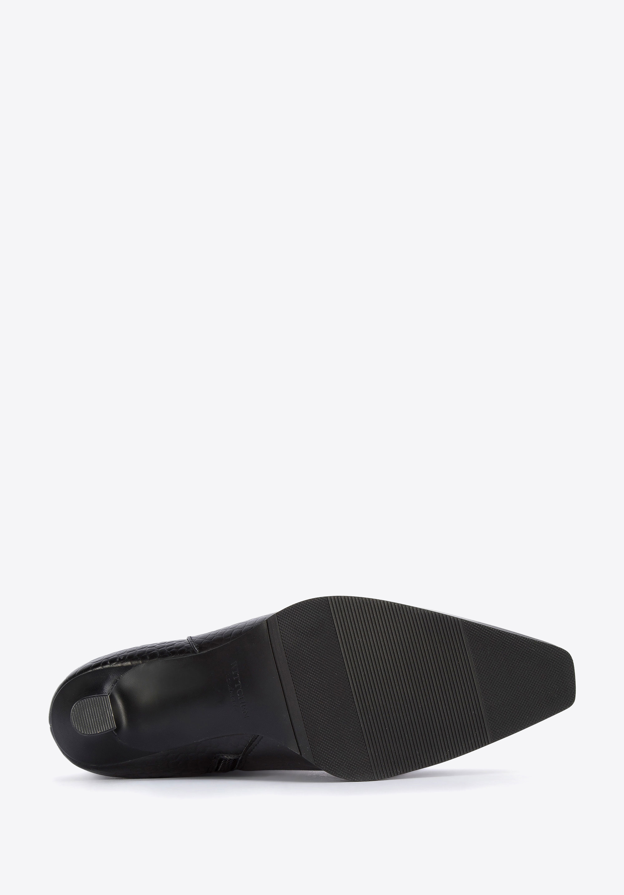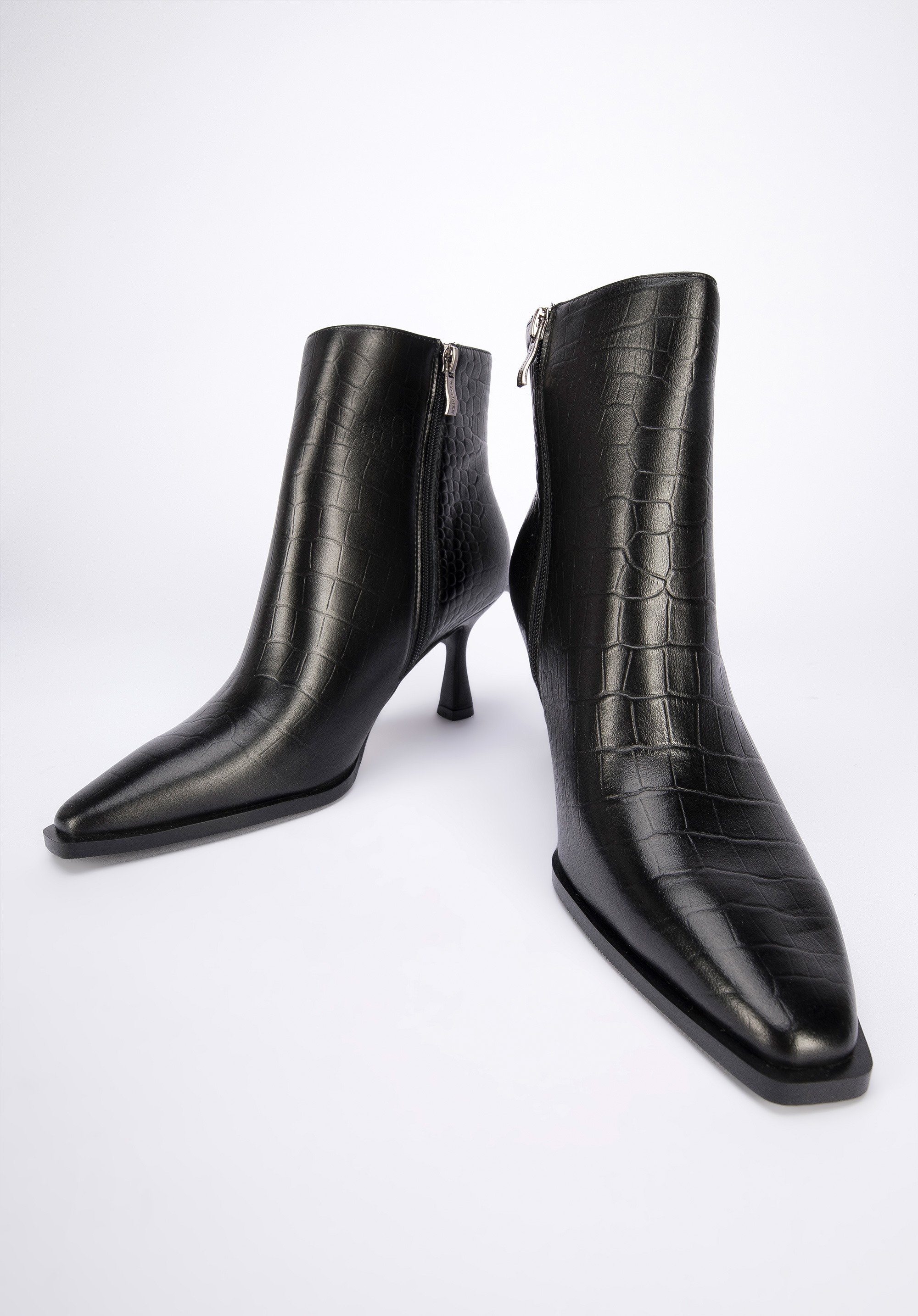Stiletto-Stiefelette aus Leder in Kroko-Optik