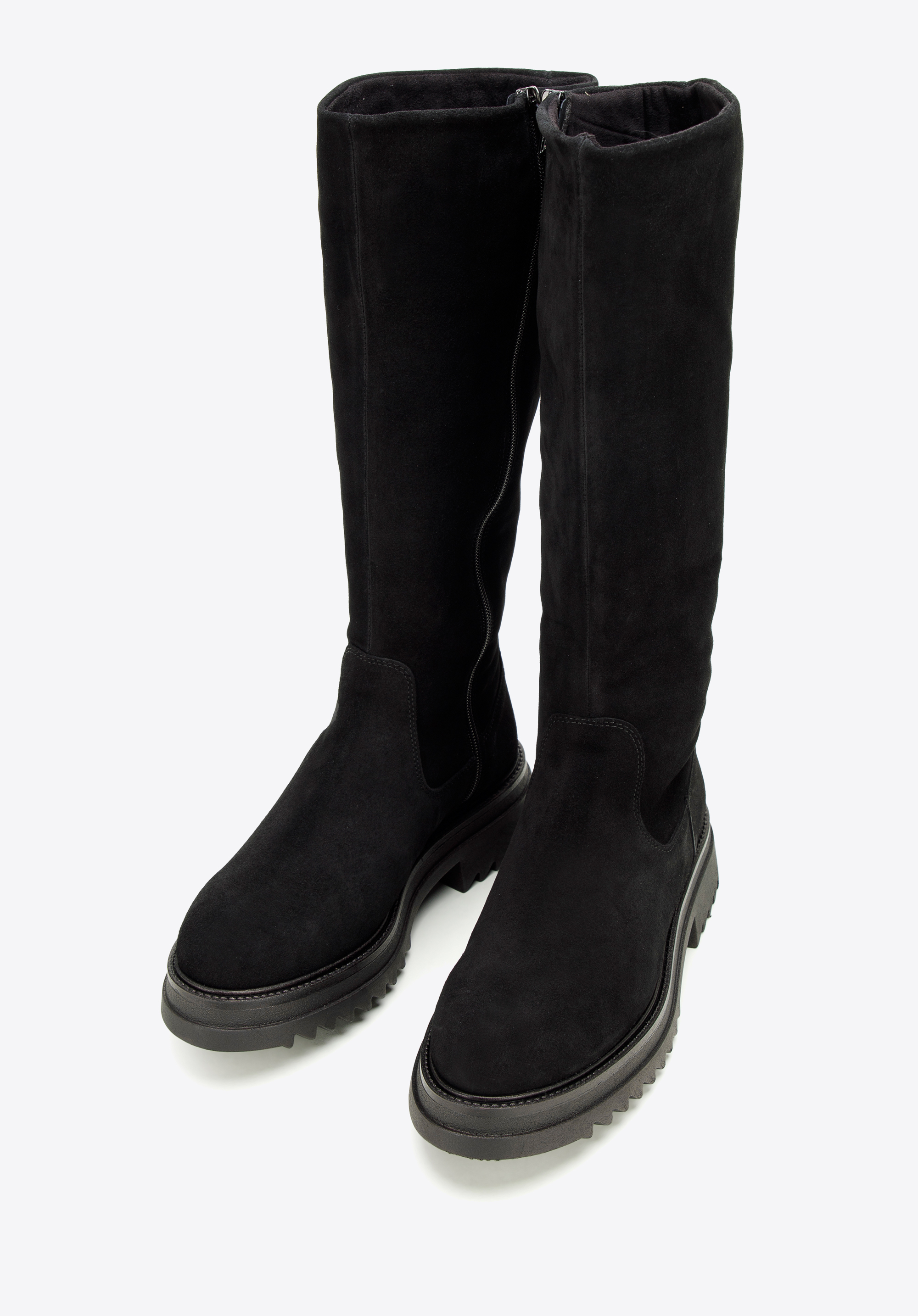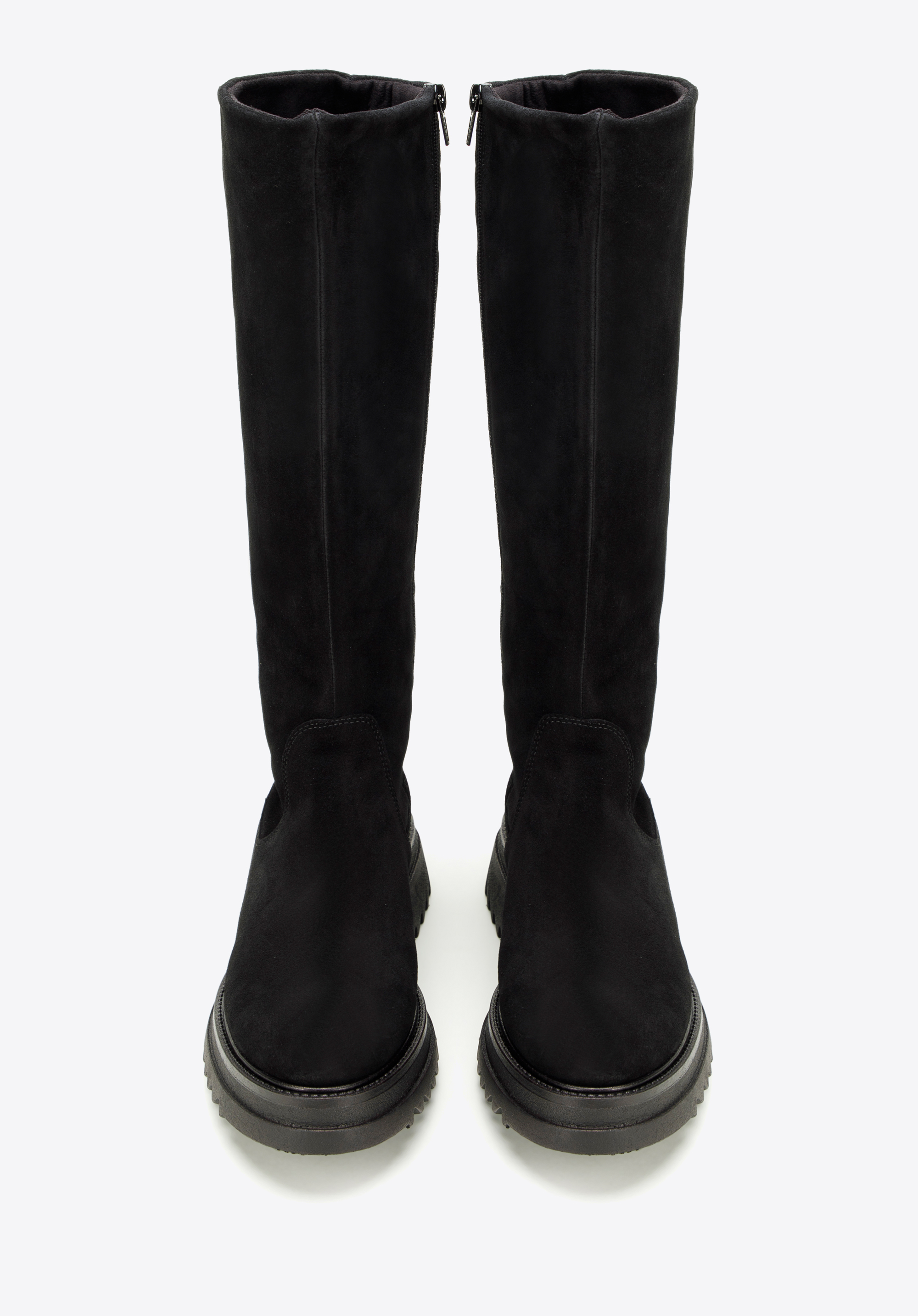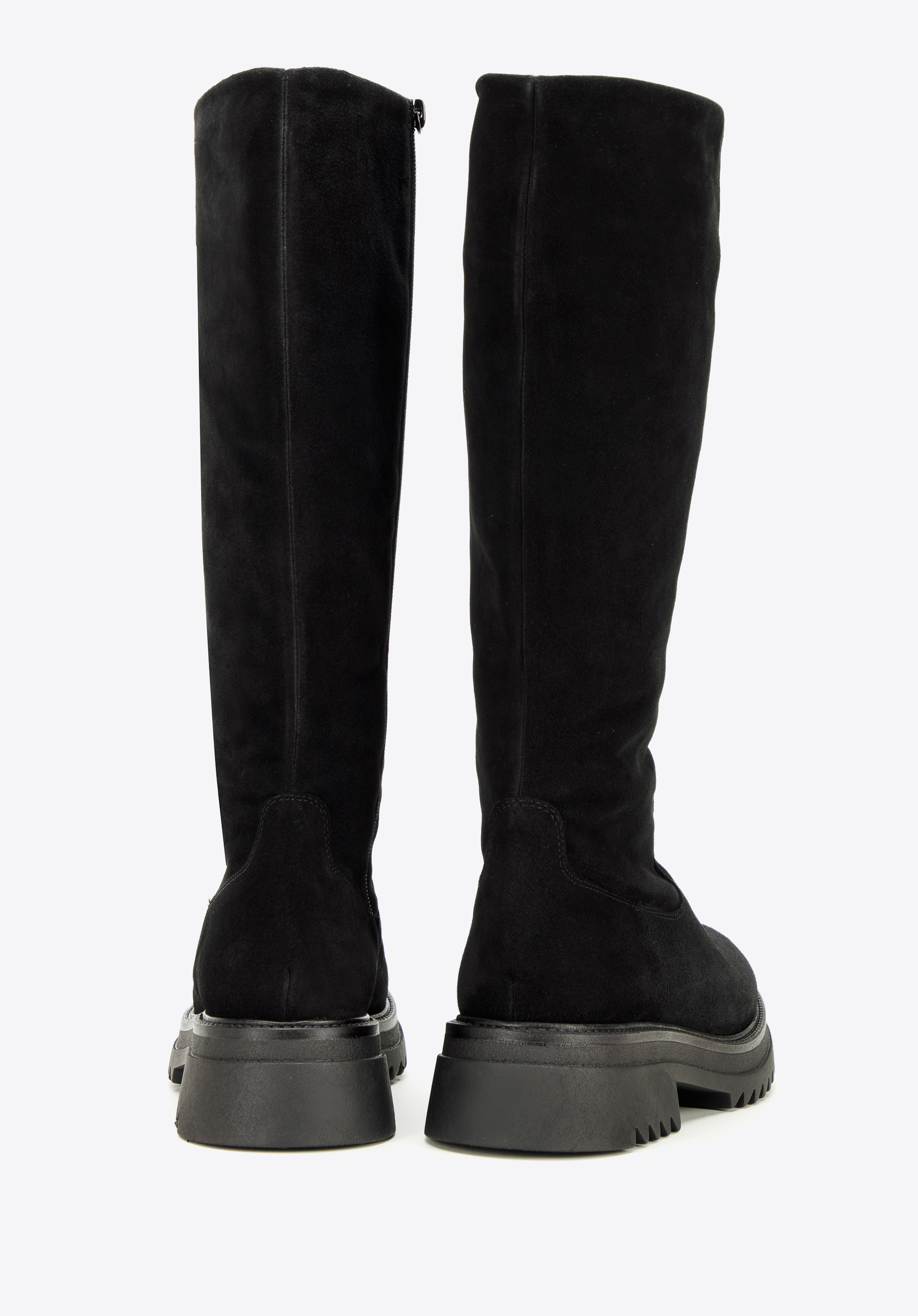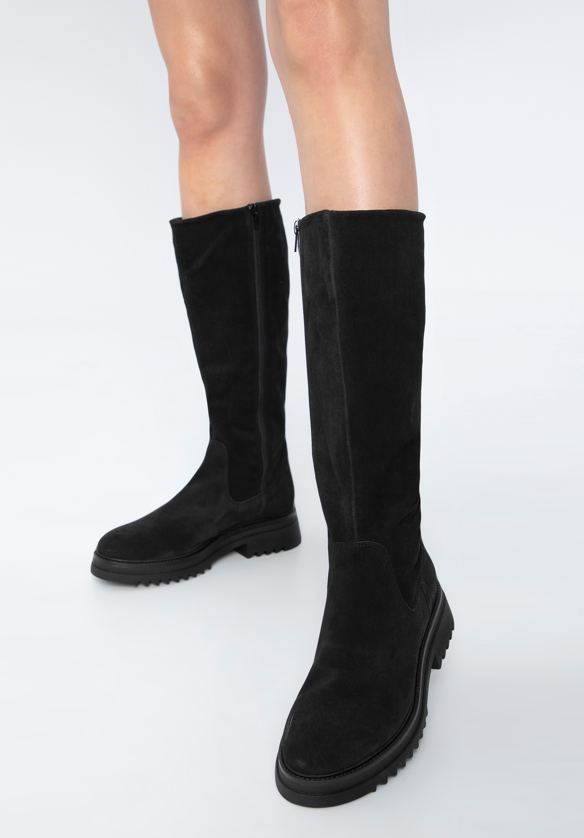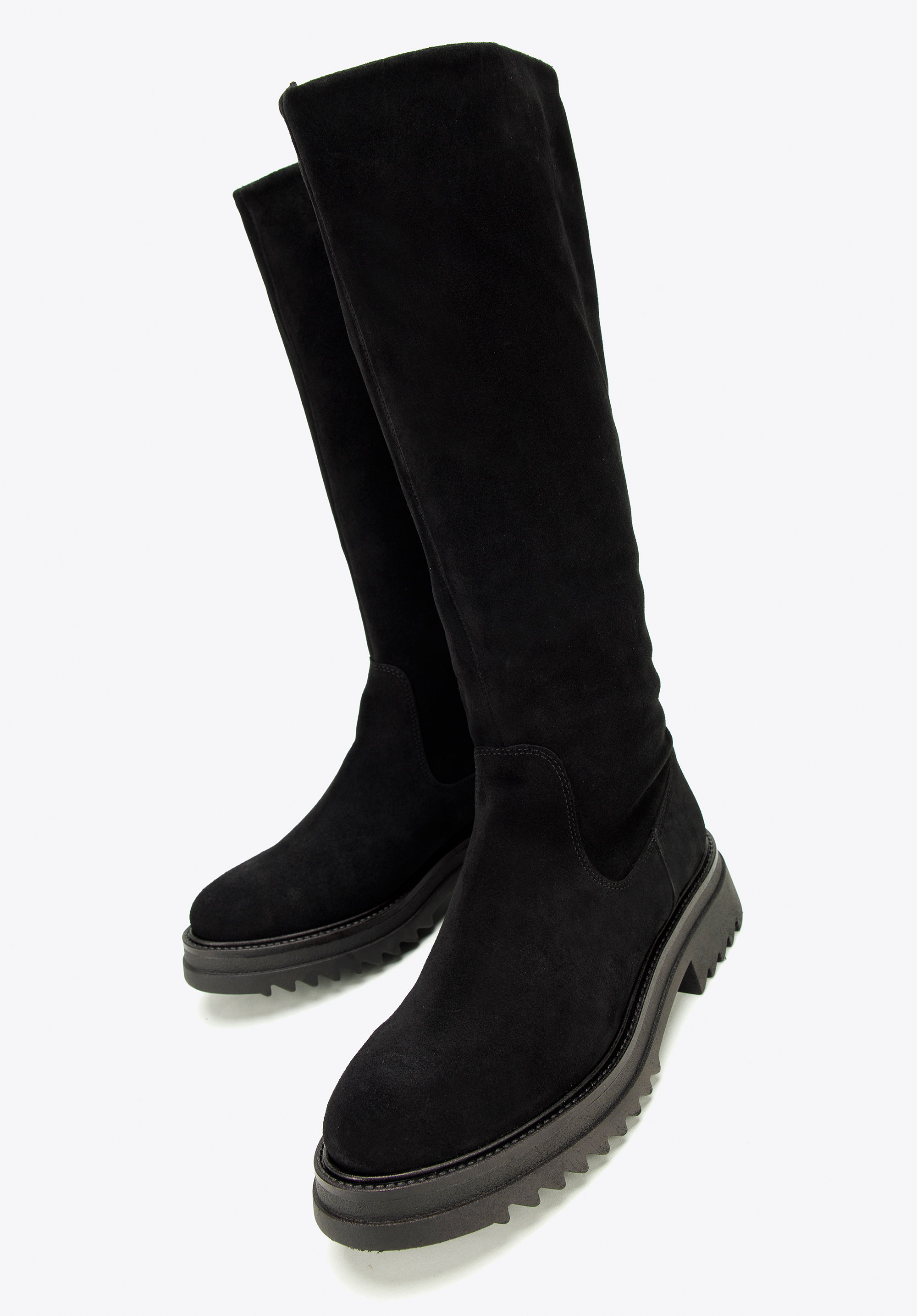 Klare Linien und schlichte Details legen den Fokus auf die klobige Plateausohle dieses kniehohen Stiefels. Eine Plateausohle verleiht jedem Look den perfekten Touch. Diese aus dem hochwertigsten Wildleder in Spanien gefertigten Statement-Schuhe zeichnen sich durch ein modisches Design aus und die Textileinlegesohle schützt vor Witterungseinflüssen. Dank des praktischen seitlichen Reißverschlusses für einen einfachen Einstieg sind sie der ideale Begleiter für Ihre Füße an kalten Wintertagen. Bringen Sie etwas Gemütlichkeit in Ihre Schuhkollektion mit einem Paar klobiger kniehoher Stiefel .