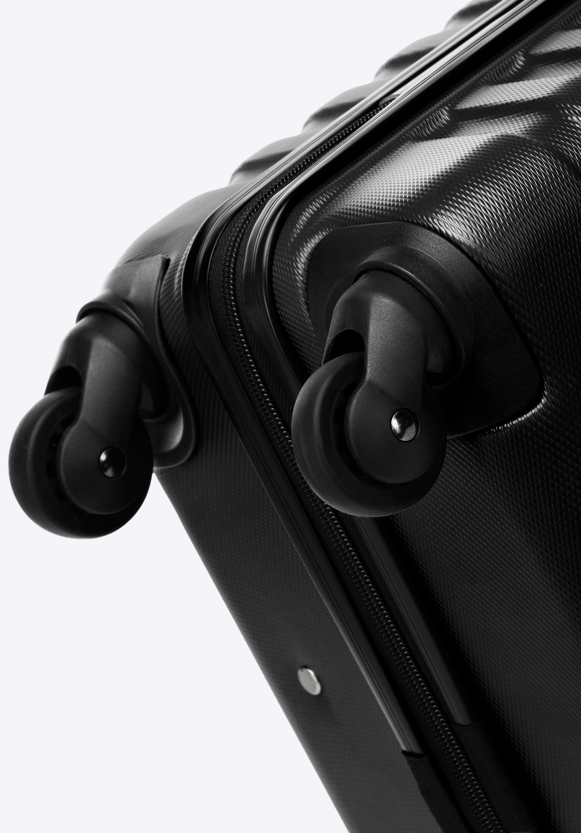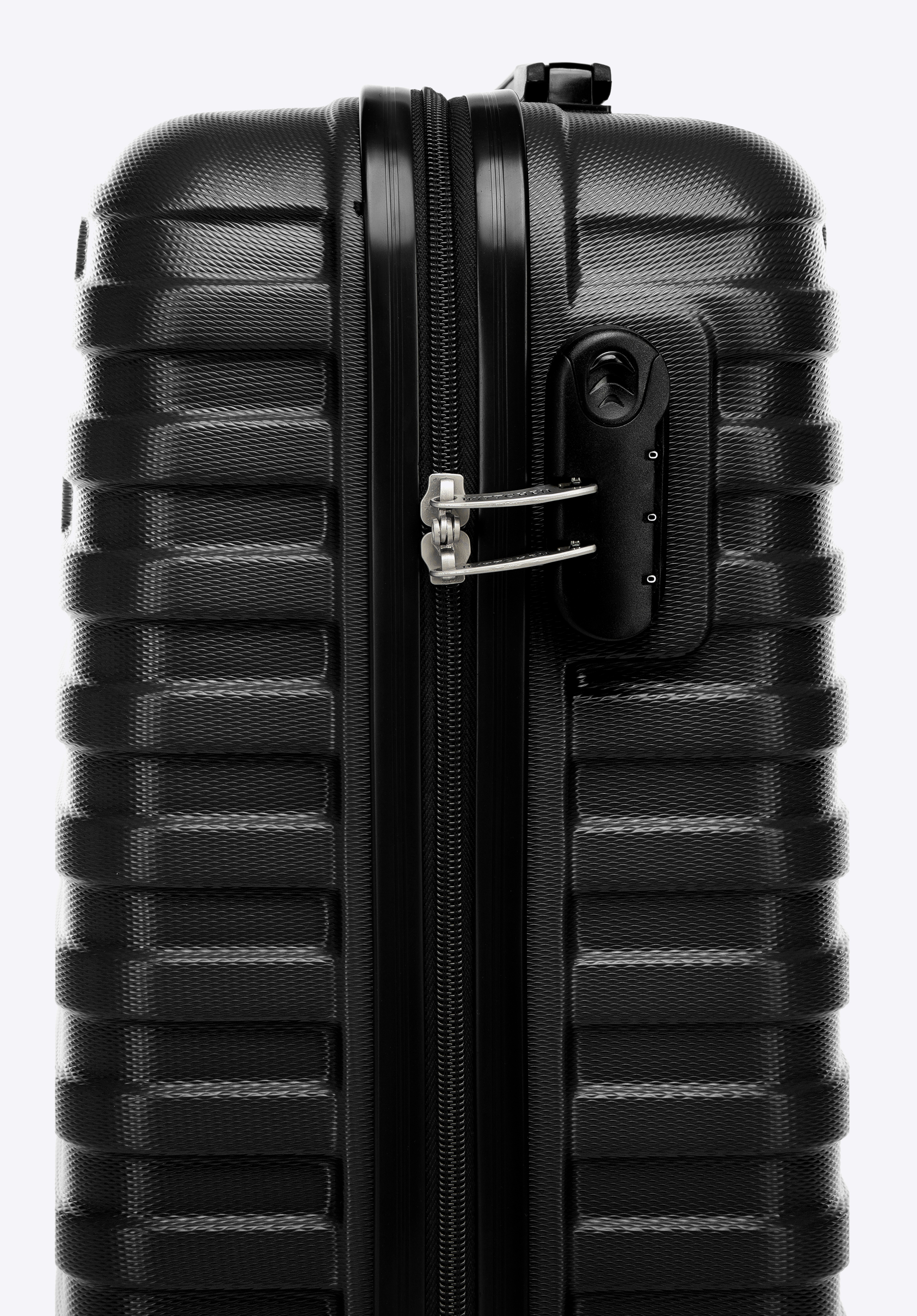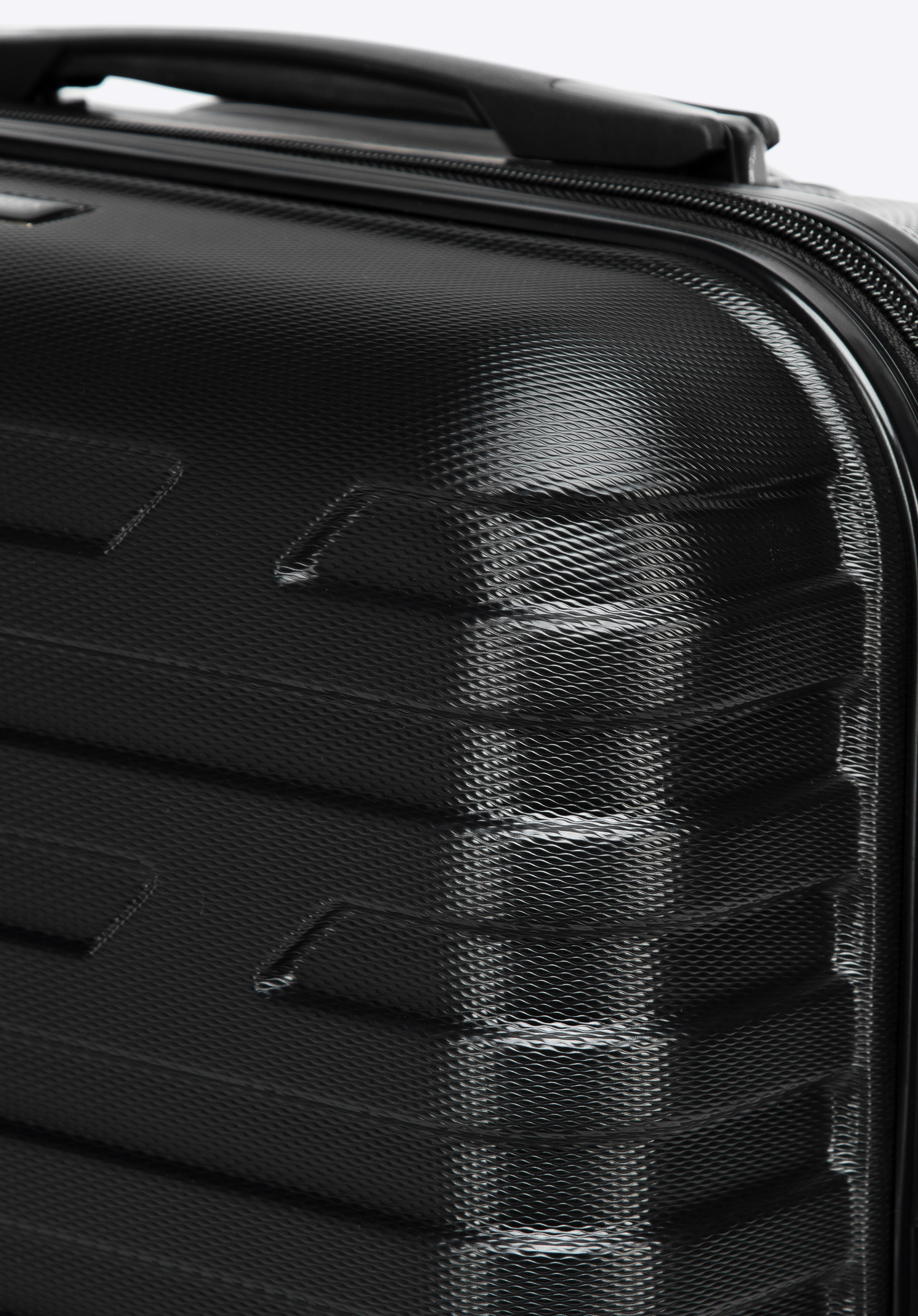 In dieser Kollektion befinden sich einfarbigen Kabinenkoffer, die aus strapazierfähigem ABS-Material hergestellt wurden. Dieses Modell passt perfekt zu einem Kosmetiketui in derselben Farbe. Dieser stillvolle Koffer ist in fünf verschiedenen Farben erhältlich: Schwarz, Rot, Grün, Blau und Gold.