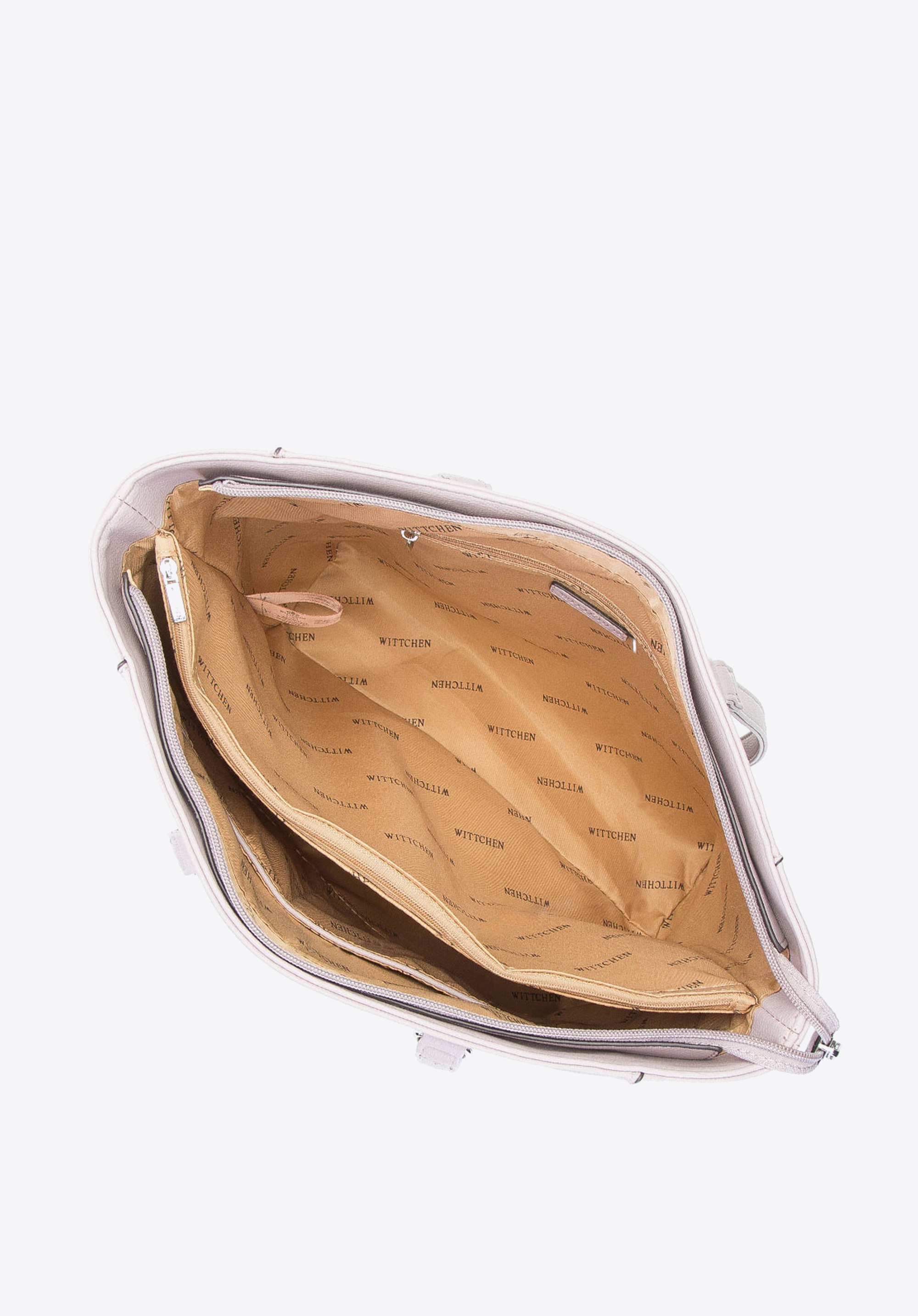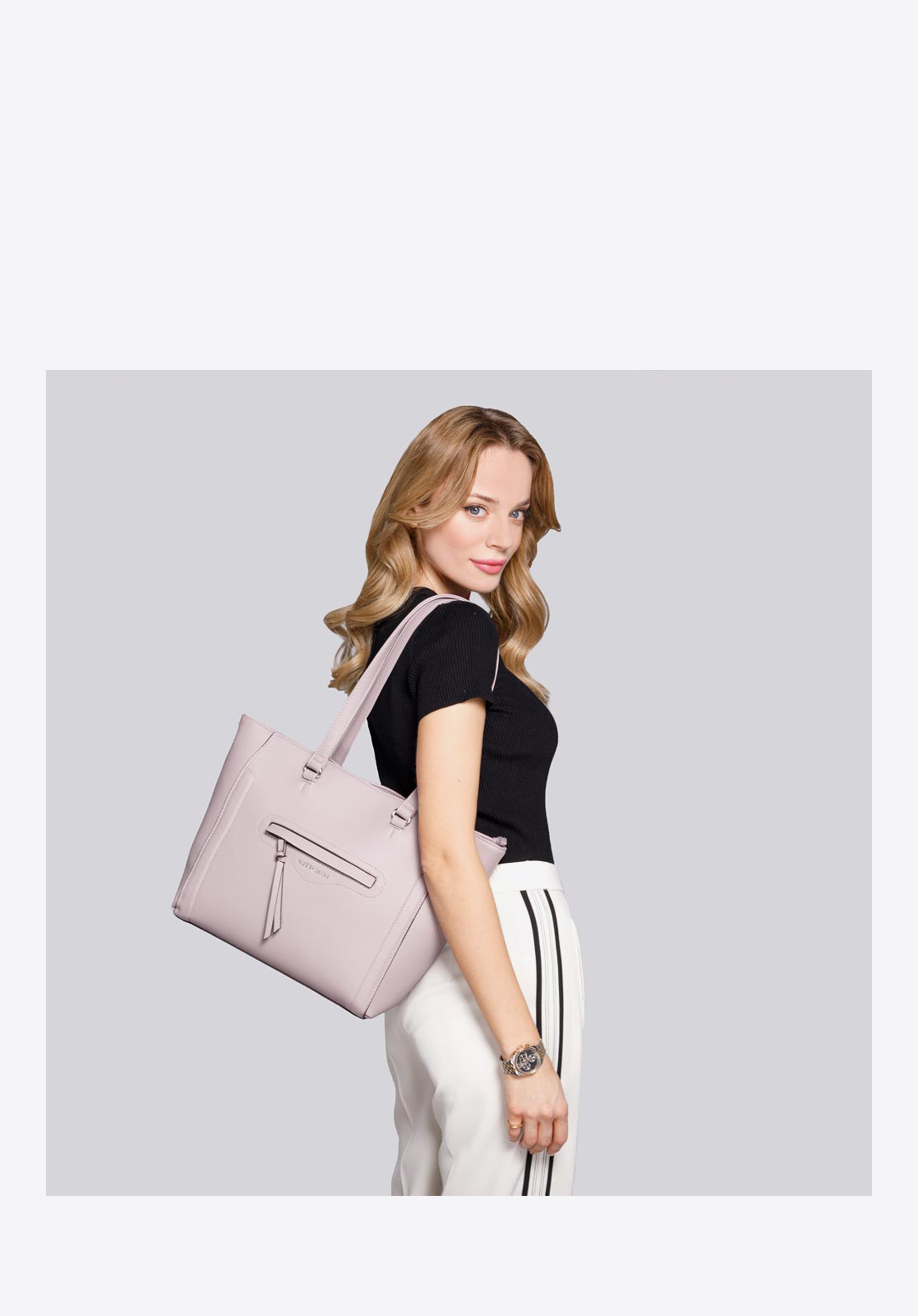Die große Shopper-Tasche zeigt sich im schlichten Look und ist durch seine wunderbare Größe ein zuverlässiger Begleiter für Büro und Alltag. Ins geräumige Hauptfach können Sie neben den Einkäufen auch A4-Unterlagen problemlos legen. Dank der zahlreichen Taschen bietet das Accessoire viel Platz für alles, was jede Frau unterwegs benötigt. Auf der Front wird dieses Modell mit praktischer Außentasche und verstecktem, dekorativem Reißverschluss ausgestattet. Der elegante Shopper wird aus umweltfreundlichem Kunstleder gefertigt. Kombiniert zu Plissee-Rock oder Wide Leg Hosen setzen Sie diese Tasche geschmackvoll in Szene.