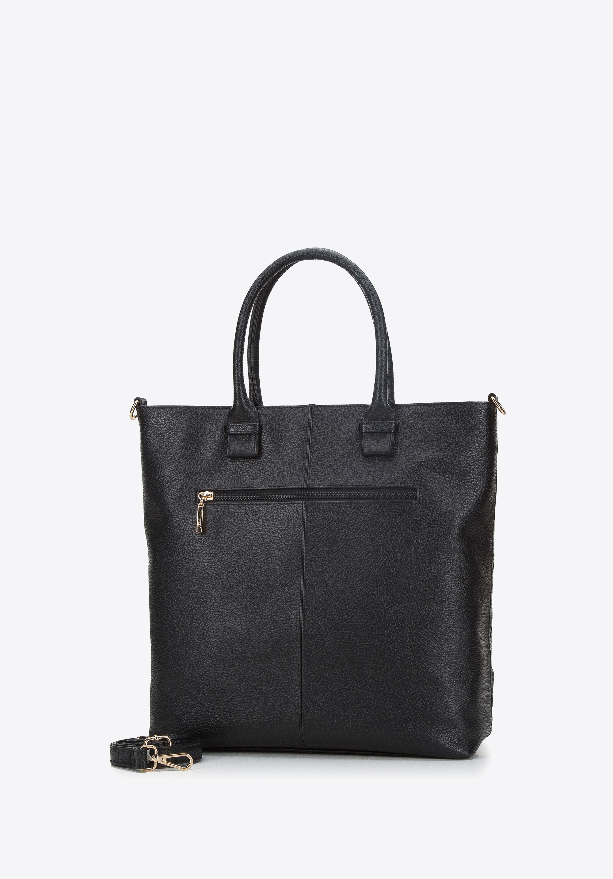 Beeindruckende, aber minimalistische Tasche mit Flechtmuster. Sie ist aus hochwertigem Echtleder gefertigt und auf der Vorderseite mit Flechtmuster verziert. Sie verfügt über zwei Fächer, in denen z. B. A4-Unterlagen, ein Portemonnaie, ein Kalender, eine kleine Wasserflasche, die Lieblingskosmetika und ein paar andere Kleinigkeiten Platz finden. Diese Shopper-Tasche ist wirklich vielseitig; sie passt sowohl zu einem luftigen Kleid als auch zu Jeans und Oversize-Bluse. Die Shopper-Tasche aus Echtleder mit Flechtmuster mit zwei Fächern ist eine perfekte Alltagstasche, die sich für die Arbeit, ein Meeting oder einen Spaziergang mit den Liebsten eignet.