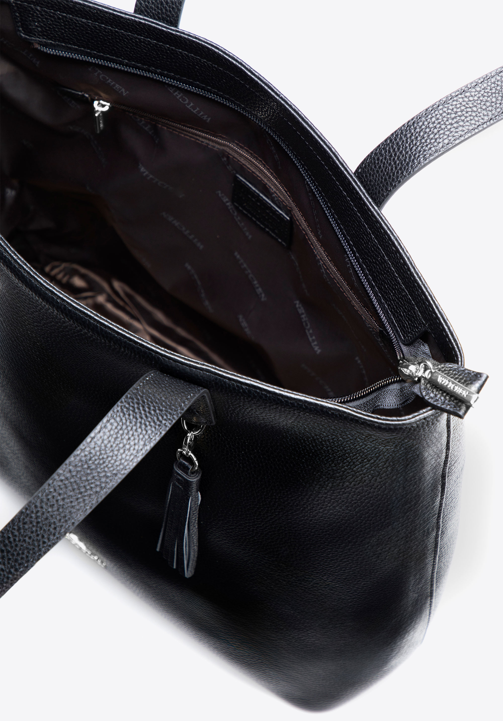 Stilvoll, zeitlos und äußerst praktisch erfüllt diese Shopper-Tasche die Erwartungen selbst der anspruchsvollsten Liebhaber von Eleganz. Sie ist aus Naturleder gefertigt und besticht durch ihre schlanke, vertikale Form, in die problemlos ein A4-Format passt. Ein zusätzlicher Blickfang ist der dekorative Henkel mit seinem Haken - dank des praktischen Karabinerhakens können Sie ihn abnehmen und als Dekoration für eine andere Tasche oder als Schlüsselanhänger verwenden. Im Inneren finden Sie drei Fächer, davon eines mit Reißverschluss, in denen Sie Ihre wichtigsten Dinge leicht organisieren können.