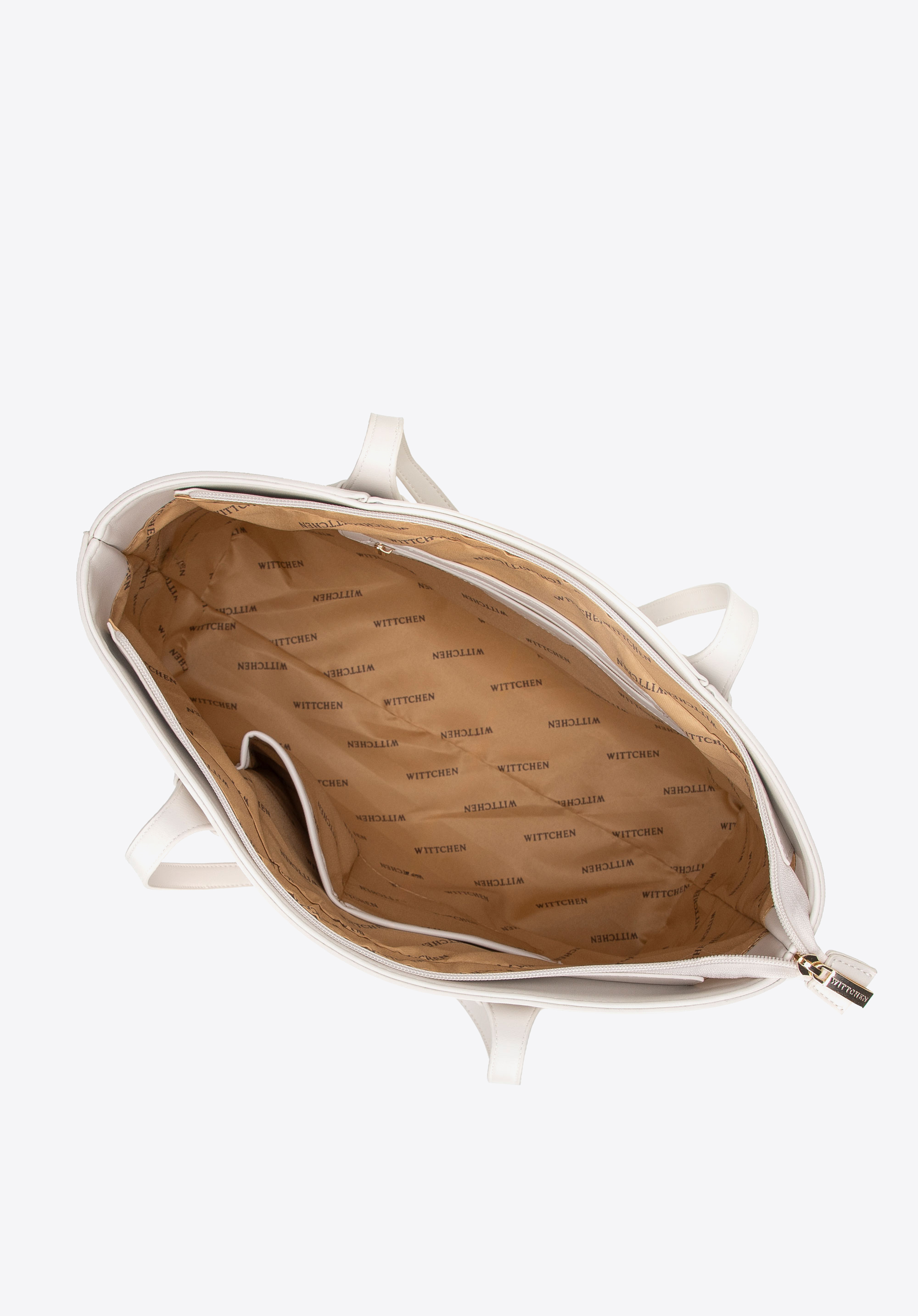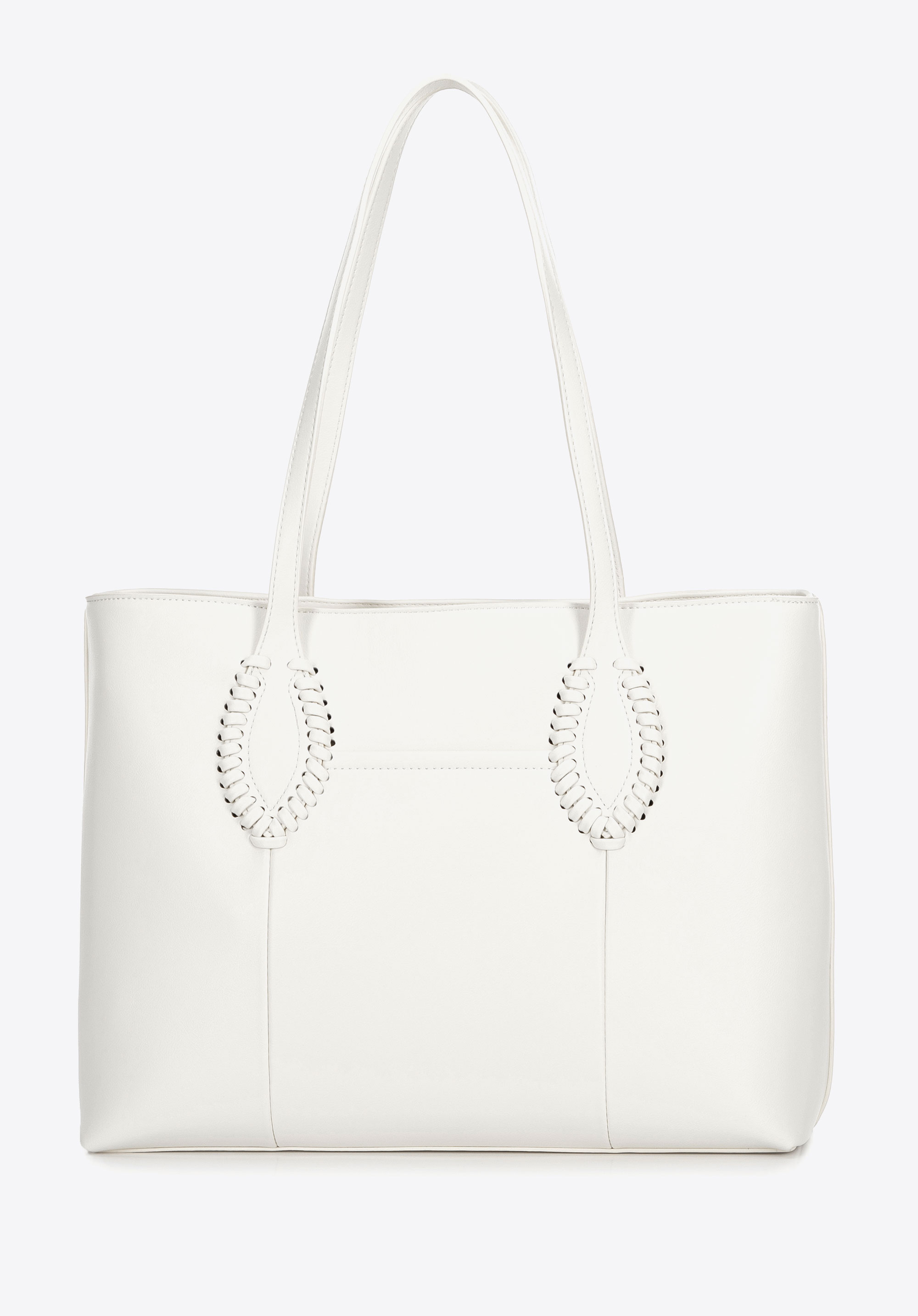 Stilvoll, geräumig und perfekt organisiert – diese Shopper-Tasche ist ein Must-have für Alltags-Outfits. Ihr klassisches Design, aufgewertet durch subtile Details, macht sie zur perfekten Ergänzung sowohl für elegante als auch für lässige Looks. Zwei bequeme Griffe ermöglichen ein bequemes Tragen über der Schulter, während das dekorative gewebte Detail an den Griffen eine einzigartige Note verleiht. Die Tasche ist mit einem Reißverschluss gesichert und im Inneren finden Sie drei praktische Taschen , darunter eine Tasche mit Reißverschluss. Eine zusätzliche offene Tasche auf der Rückseite ist perfekt für Ihre wichtigsten Dinge.