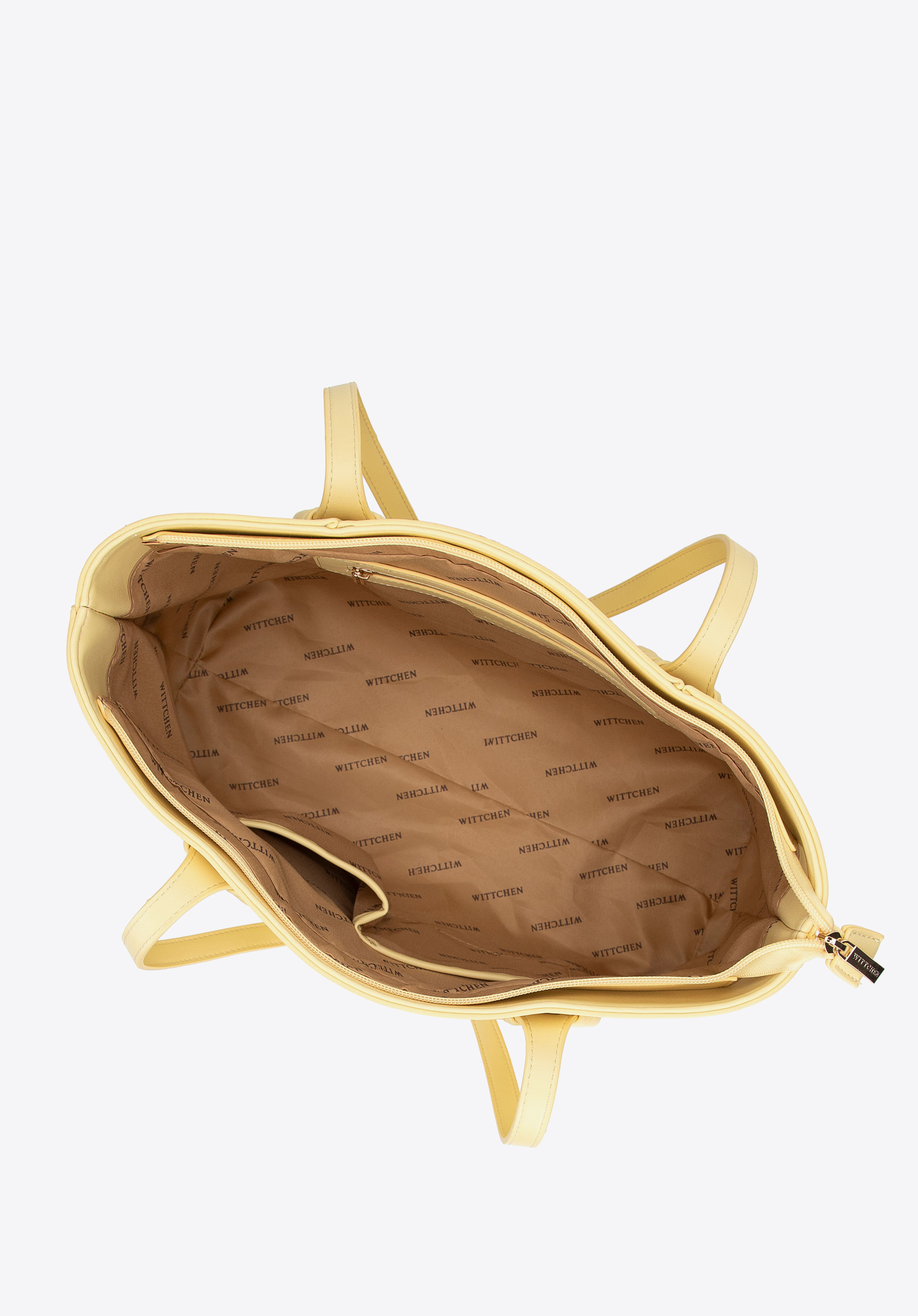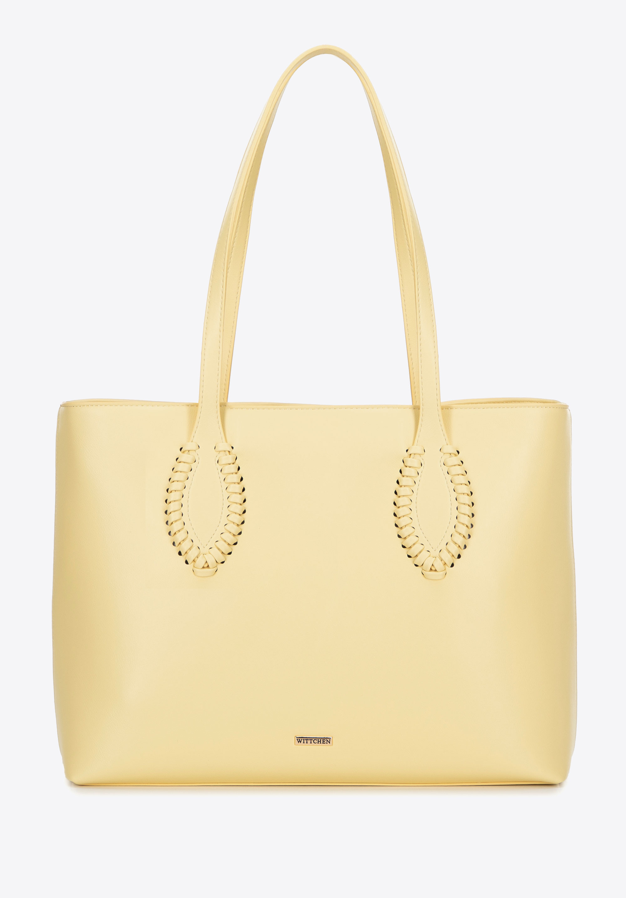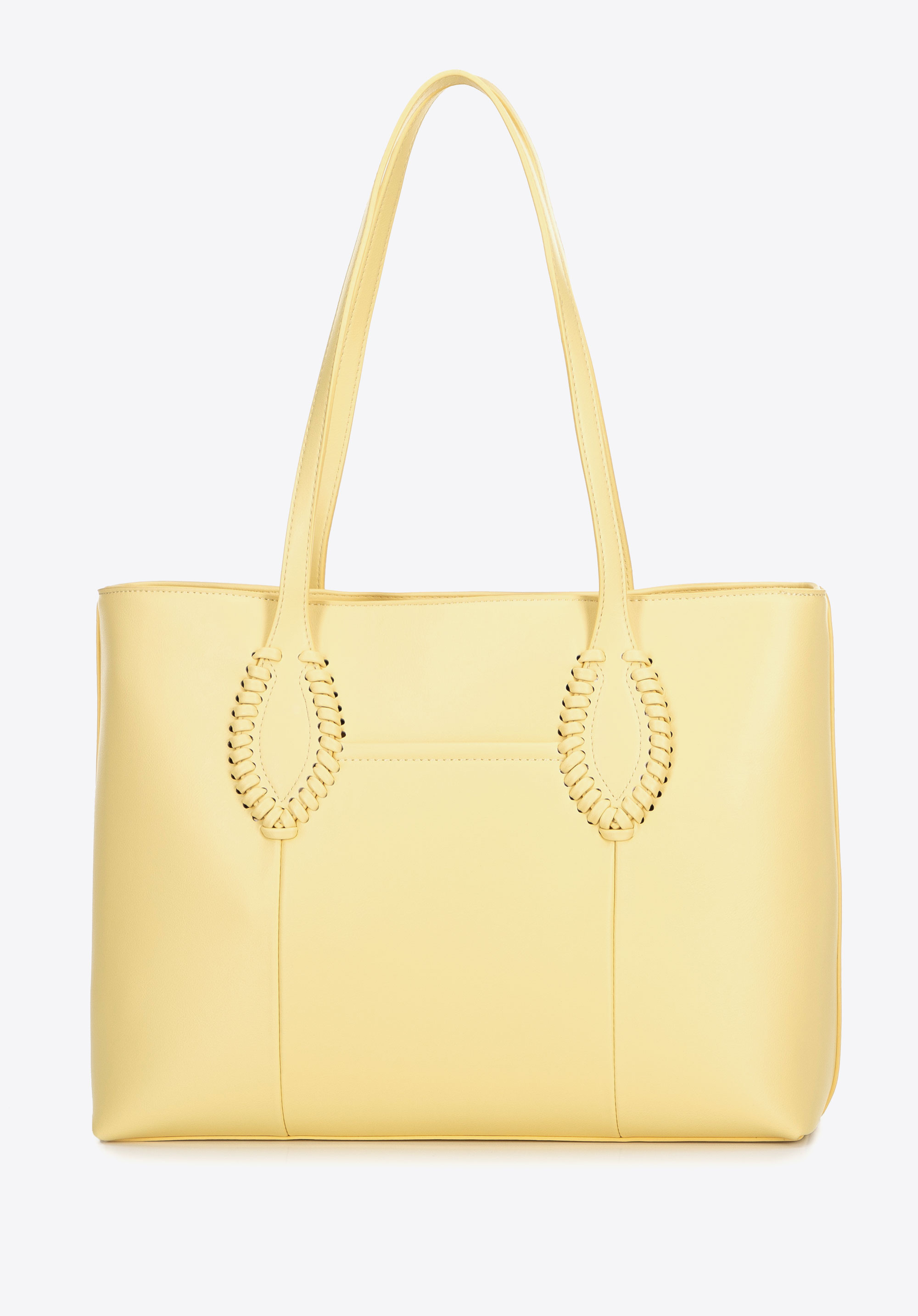 Stilvoll, geräumig und perfekt organisiert – diese Shopper-Tasche ist ein Must-have für Alltags-Outfits. Ihr klassisches Design, aufgewertet durch subtile Details, macht sie zur perfekten Ergänzung sowohl für elegante als auch für lässige Looks. Zwei bequeme Griffe ermöglichen ein bequemes Tragen über der Schulter, während das dekorative gewebte Detail an den Griffen eine einzigartige Note verleiht. Die Tasche ist mit einem Reißverschluss gesichert und im Inneren finden Sie drei praktische Taschen , darunter eine Tasche mit Reißverschluss. Eine zusätzliche offene Tasche auf der Rückseite ist perfekt für Ihre wichtigsten Dinge.