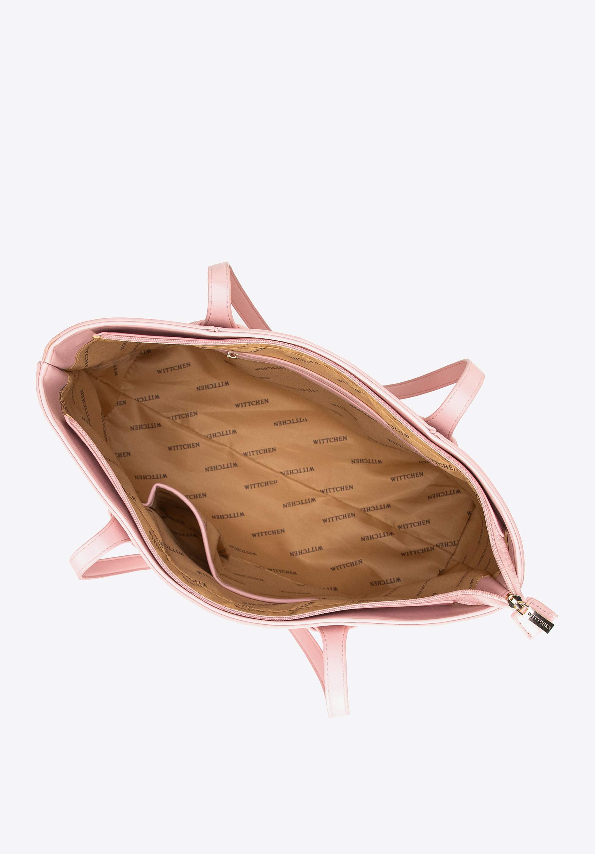 Stilvoll, geräumig und perfekt organisiert – diese Shopper-Tasche ist ein Must-have für Alltags-Outfits. Ihr klassisches Design, aufgewertet durch subtile Details, macht sie zur perfekten Ergänzung sowohl für elegante als auch für lässige Looks. Zwei bequeme Griffe ermöglichen ein bequemes Tragen über der Schulter, während das dekorative gewebte Detail an den Griffen eine einzigartige Note verleiht. Die Tasche ist mit einem Reißverschluss gesichert und im Inneren finden Sie drei praktische Taschen , darunter eine Tasche mit Reißverschluss. Eine zusätzliche offene Tasche auf der Rückseite ist perfekt für Ihre wichtigsten Dinge.