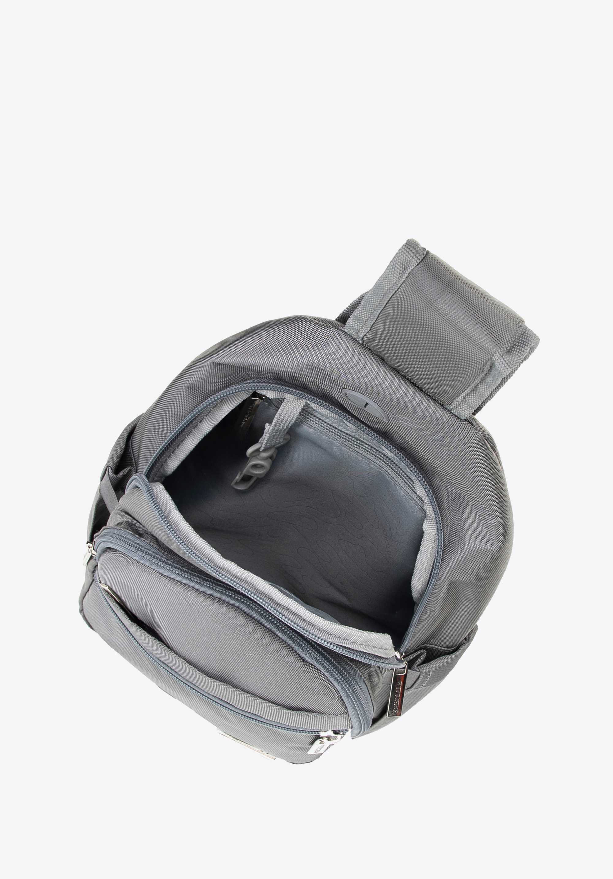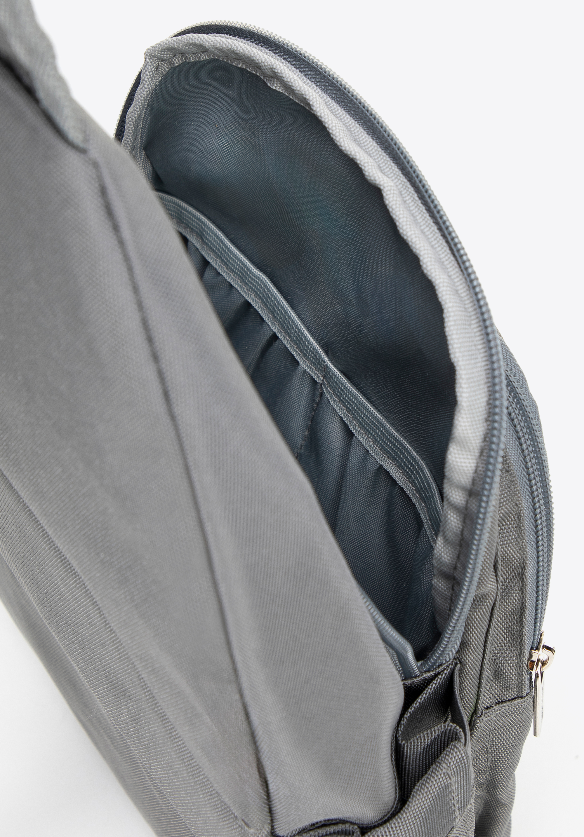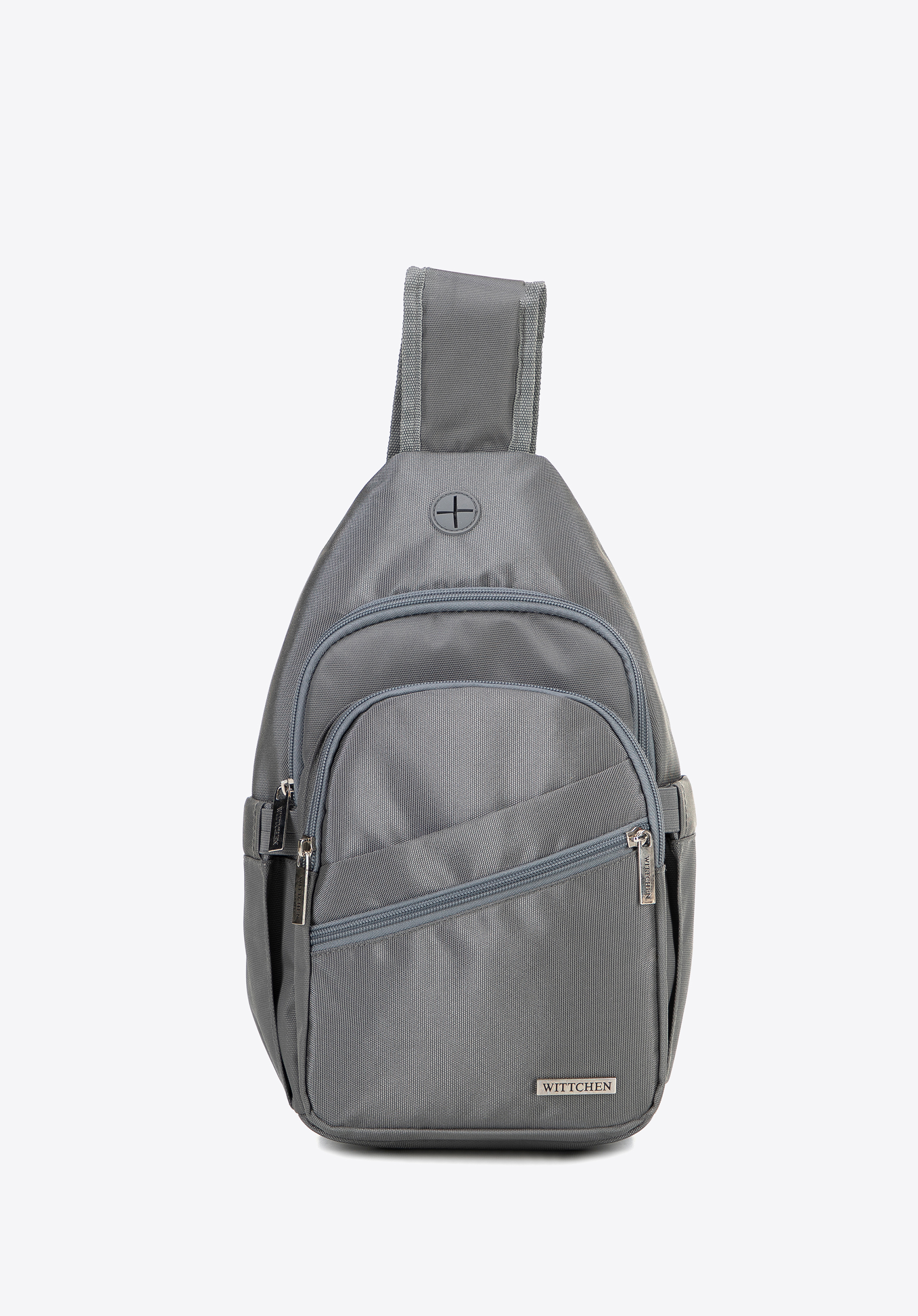 Kompakt und bereit für alles, was der Tag bringt. Dieser Rucksack aus strapazierfähigem Polyester wird über der Schulter getragen und erleichtert die tägliche Organisation. Drei Reißverschlusstaschen vorne – jede kleiner als die andere – helfen, Ihre wichtigen Dinge übersichtlich zu verstauen und verleihen ihm gleichzeitig einen Hauch von Stil. Der verstellbare Riemen lässt sich beidseitig befestigen, sodass Sie ihn über der Schulter tragen können. Die Tasche am Riemen eignet sich perfekt für Ihr Handy oder Ihre Schlüssel.