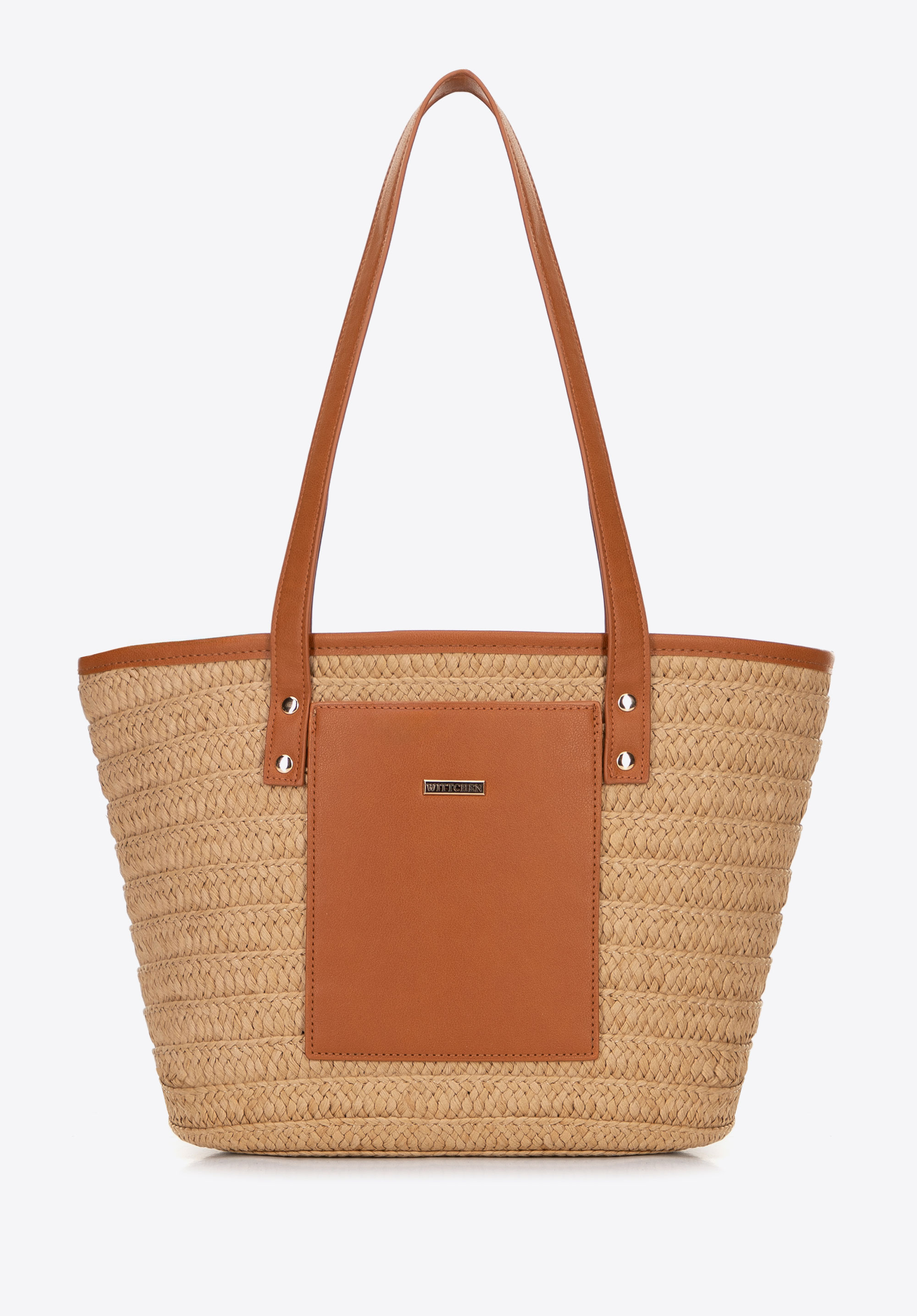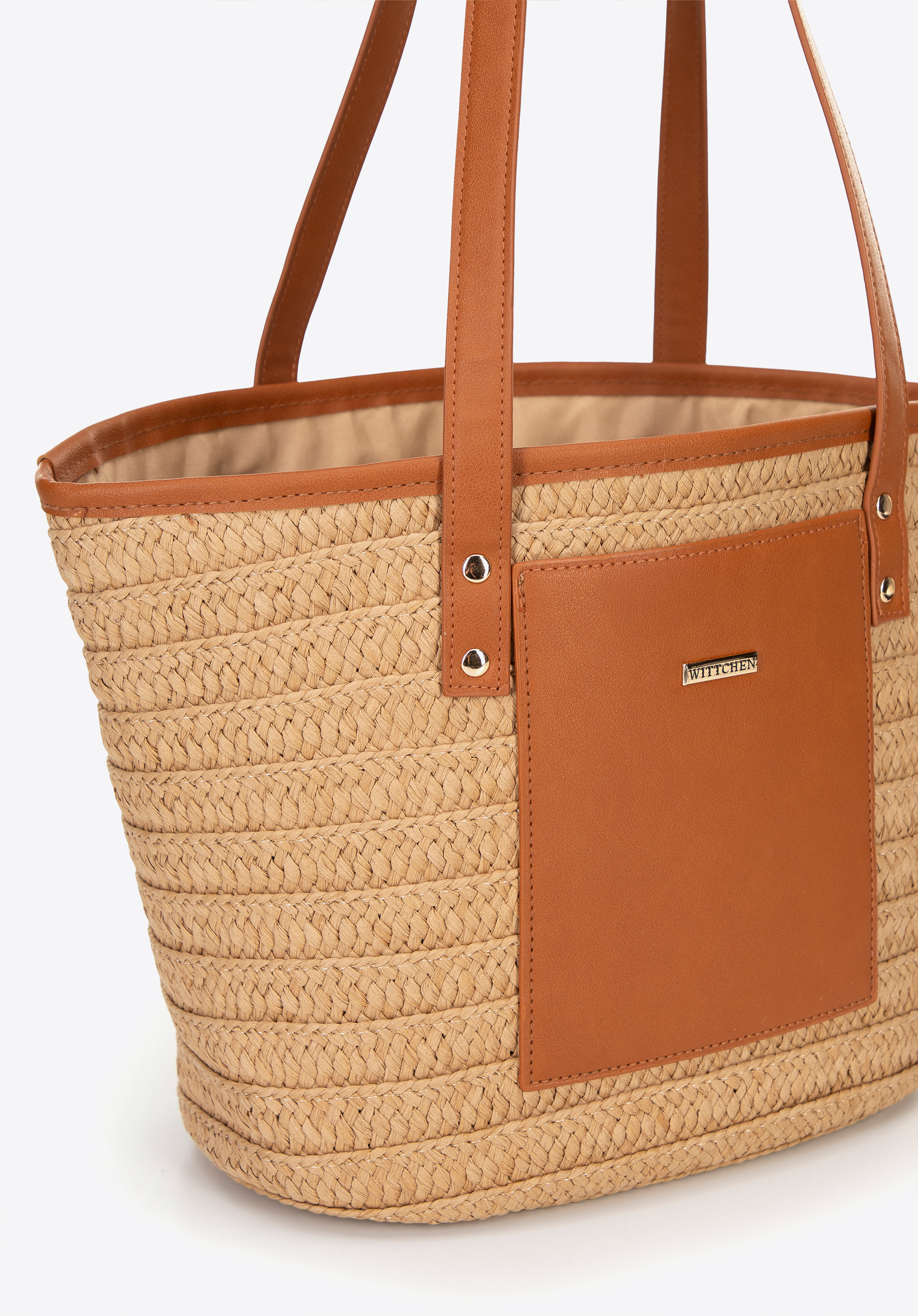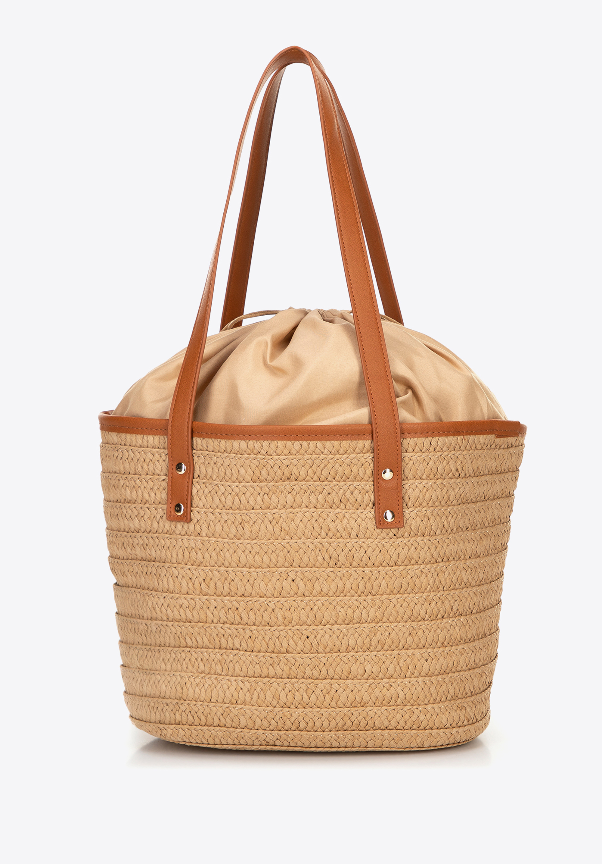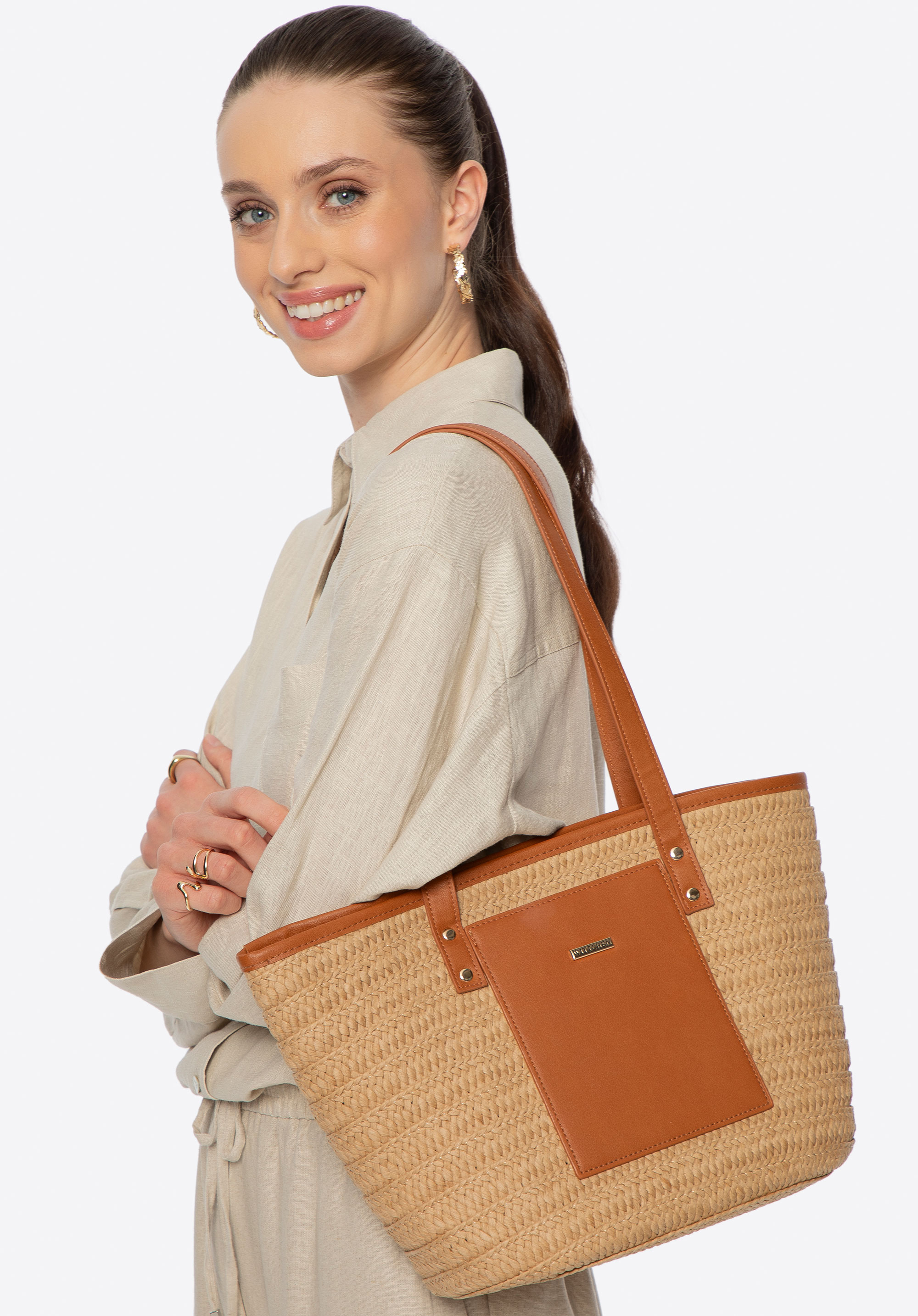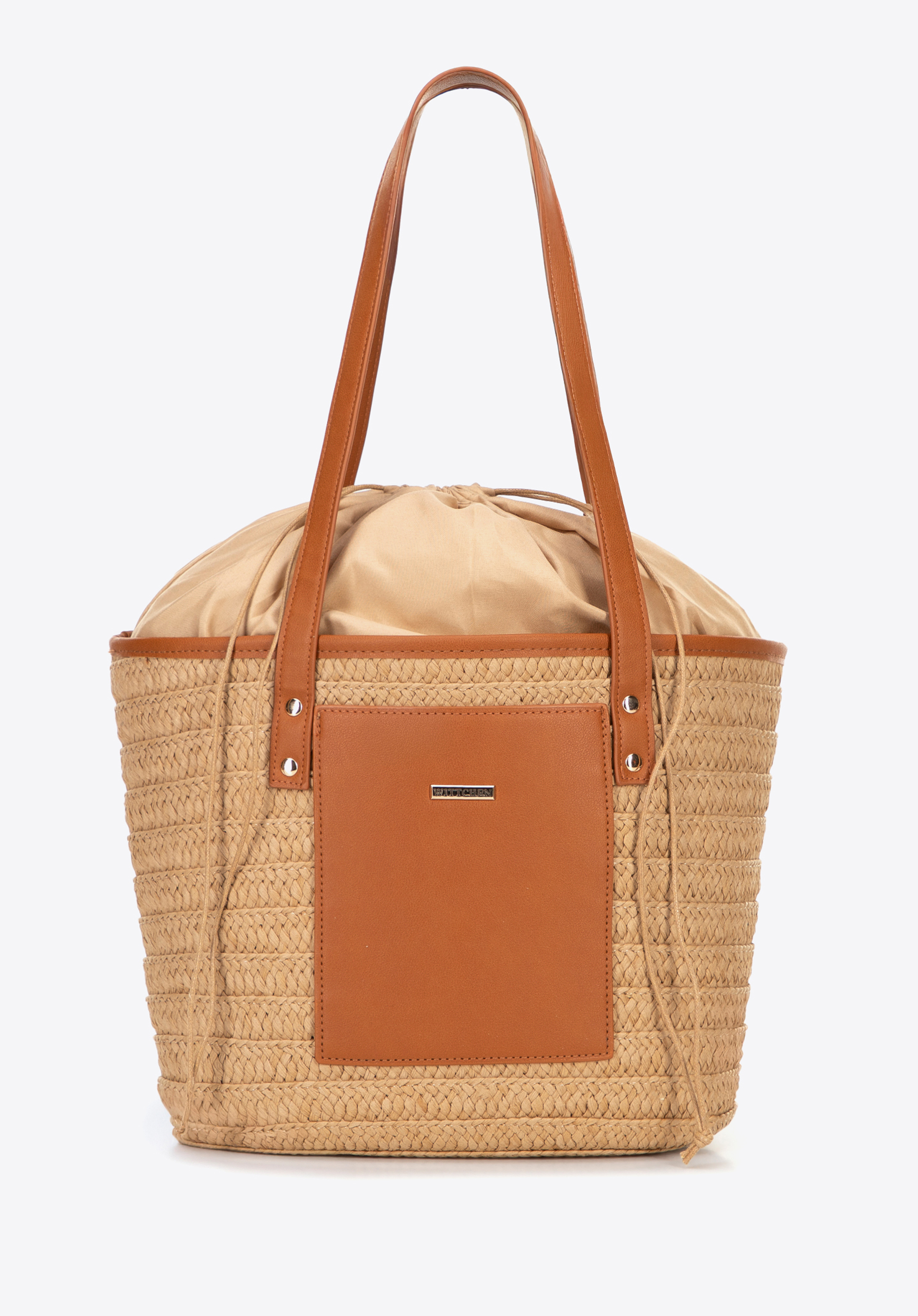 Strohkorb aus gewebtem Papier für Damen beige-braun