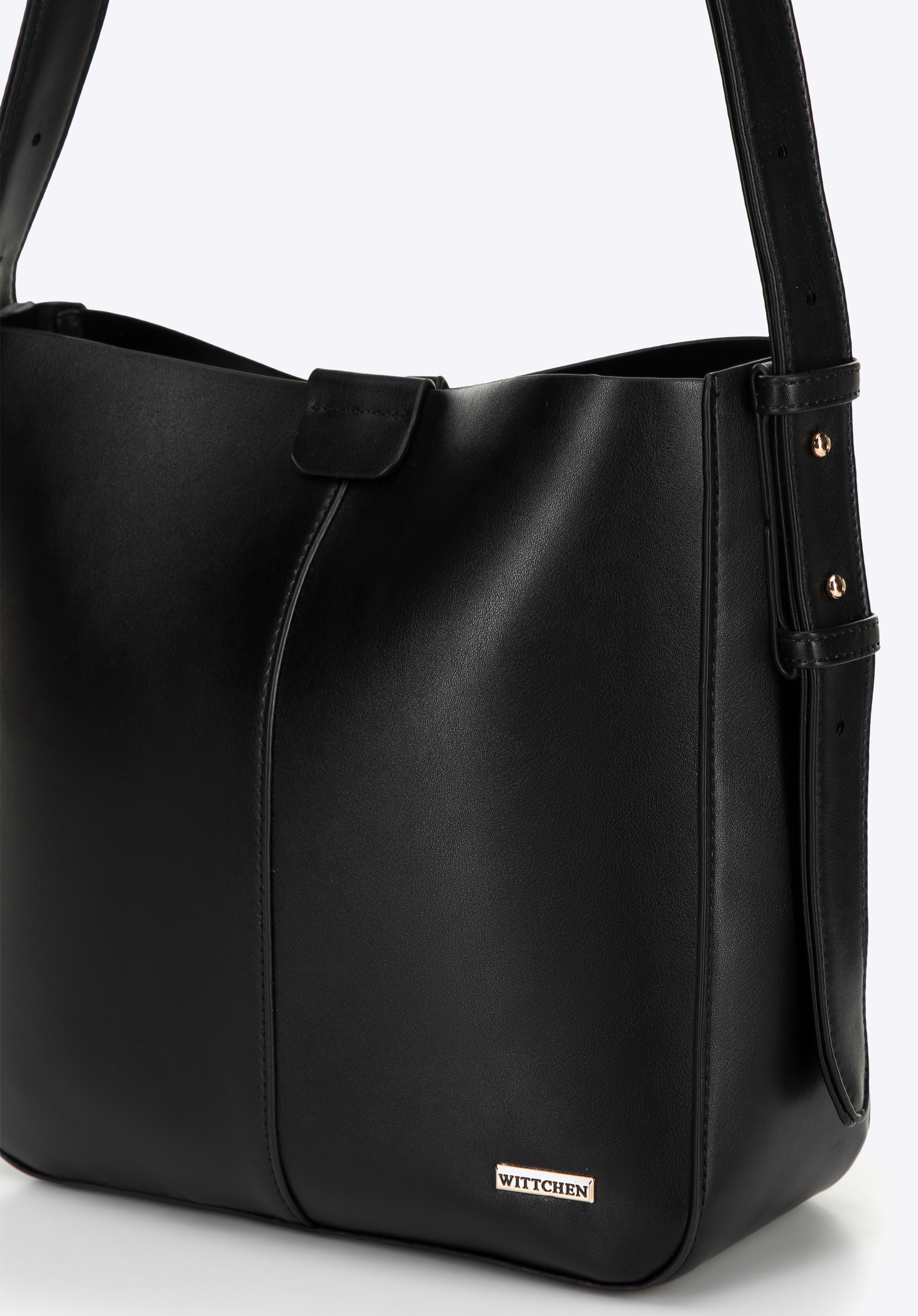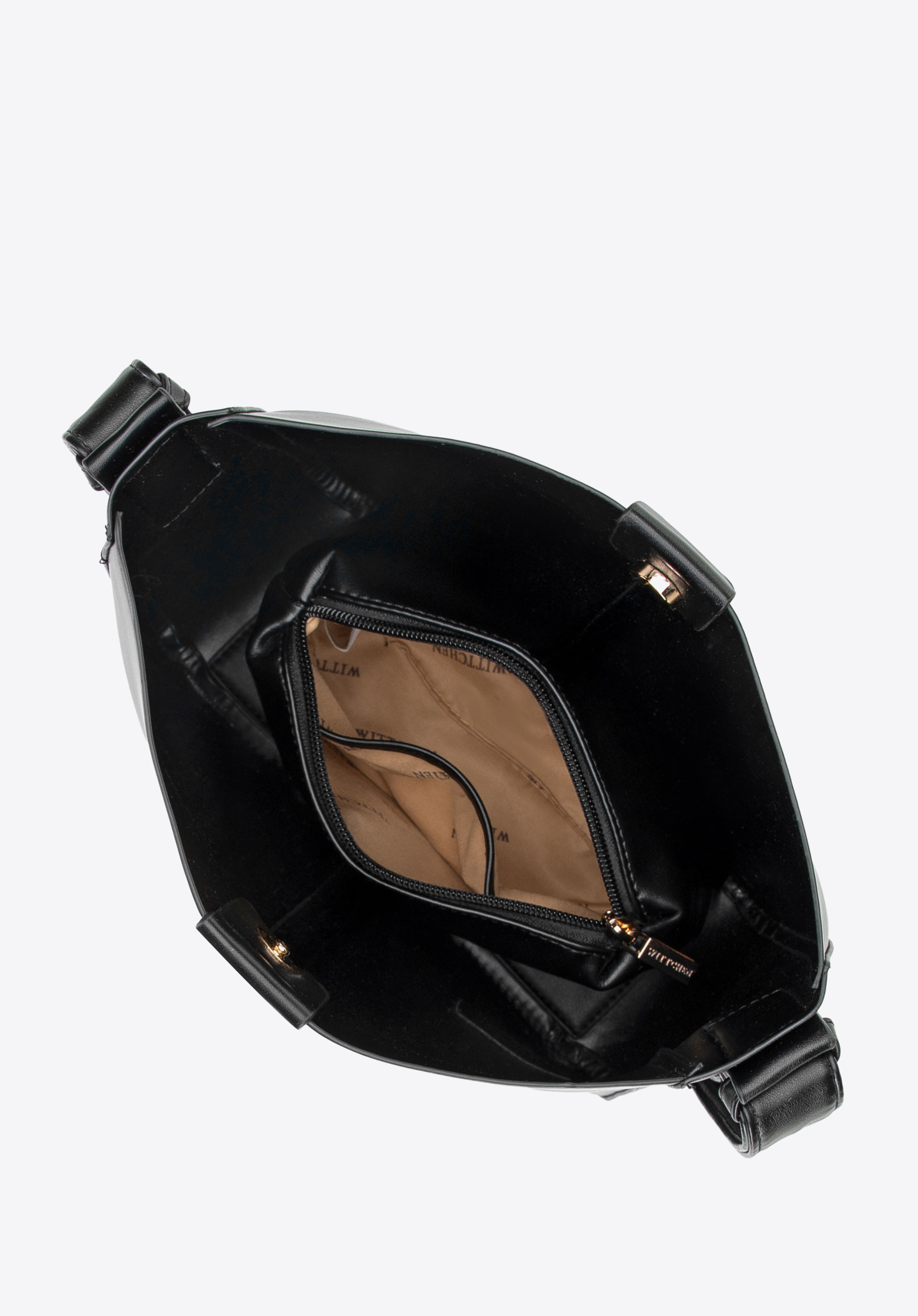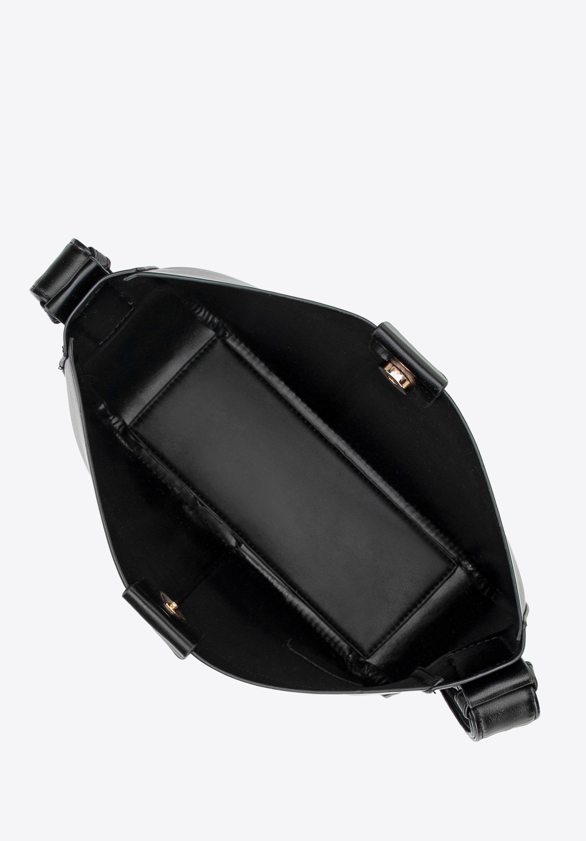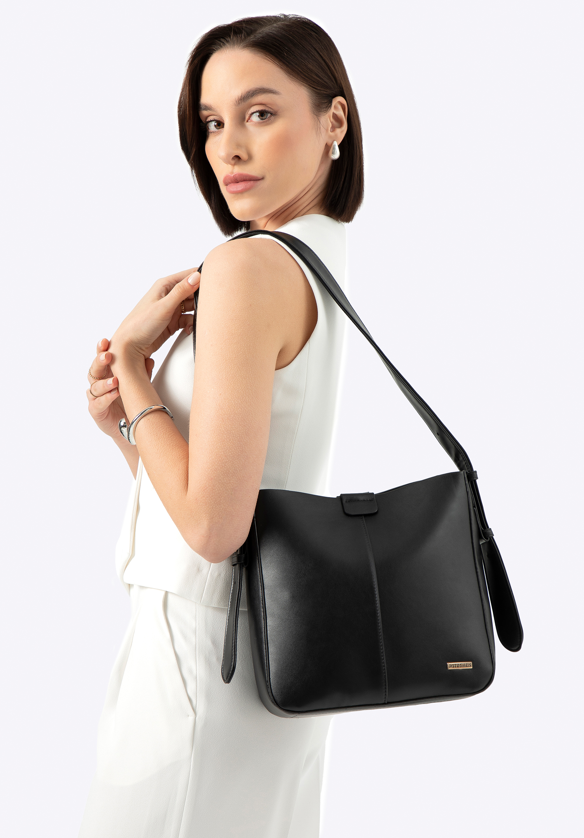 Diese elegante Tasche aus ökologischem Leder ist die ideale Wahl für Frauen, die Wert auf Stil und Funktionalität legen. Die Tasche wird mit einem Magneten verschlossen, der einen bequemen Zugriff auf das Innere ermöglicht, und das Herstellerlogo auf der Vorderseite unterstreicht dezent ihren exklusiven Charakter. Dank des verstellbaren Henkels können Sie die Länge an Ihre Bedürfnisse anpassen, um ein bequemes Tragen zu gewährleisten. Im Inneren befindet sich eine praktische Tasche, die mit zwei Fächern, darunter ein Reißverschlussfach, für mehr Ordnung in der Tasche sorgt.