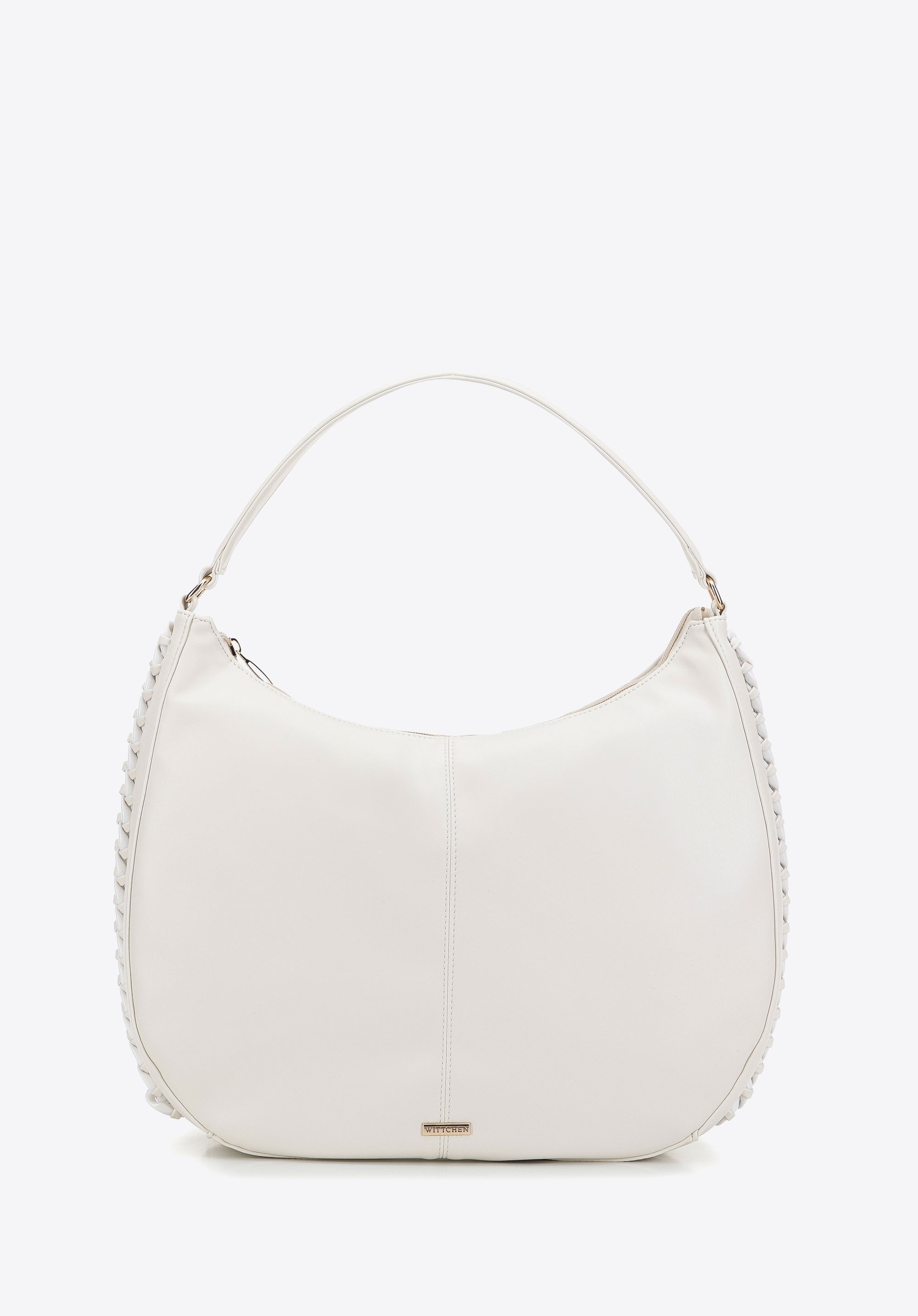 Diese große Damenhandtasche ist perfekt für alle Liebhaber des klassischen Stils in moderner Form. Die zart abgerundete Form dieser Handtasche ist mit einer dicken, glitzernden Kette verziert. Im Inneren passt fast alles hinein, was Sie für den ganzen anstrengenden Tag brauchen: A4-Dokumente, Kalender, Geldbörse, Kosmetiktasche, Thermobecher, Ersatzschal und ein paar Kleinigkeiten. Eine Hobo-Tasche aus Kunstleder mit eingewebtem Kettenbesatz ist eine tolle Wahl für den täglichen Gebrauch, sowohl bei der Arbeit als auch nach Feierabend.