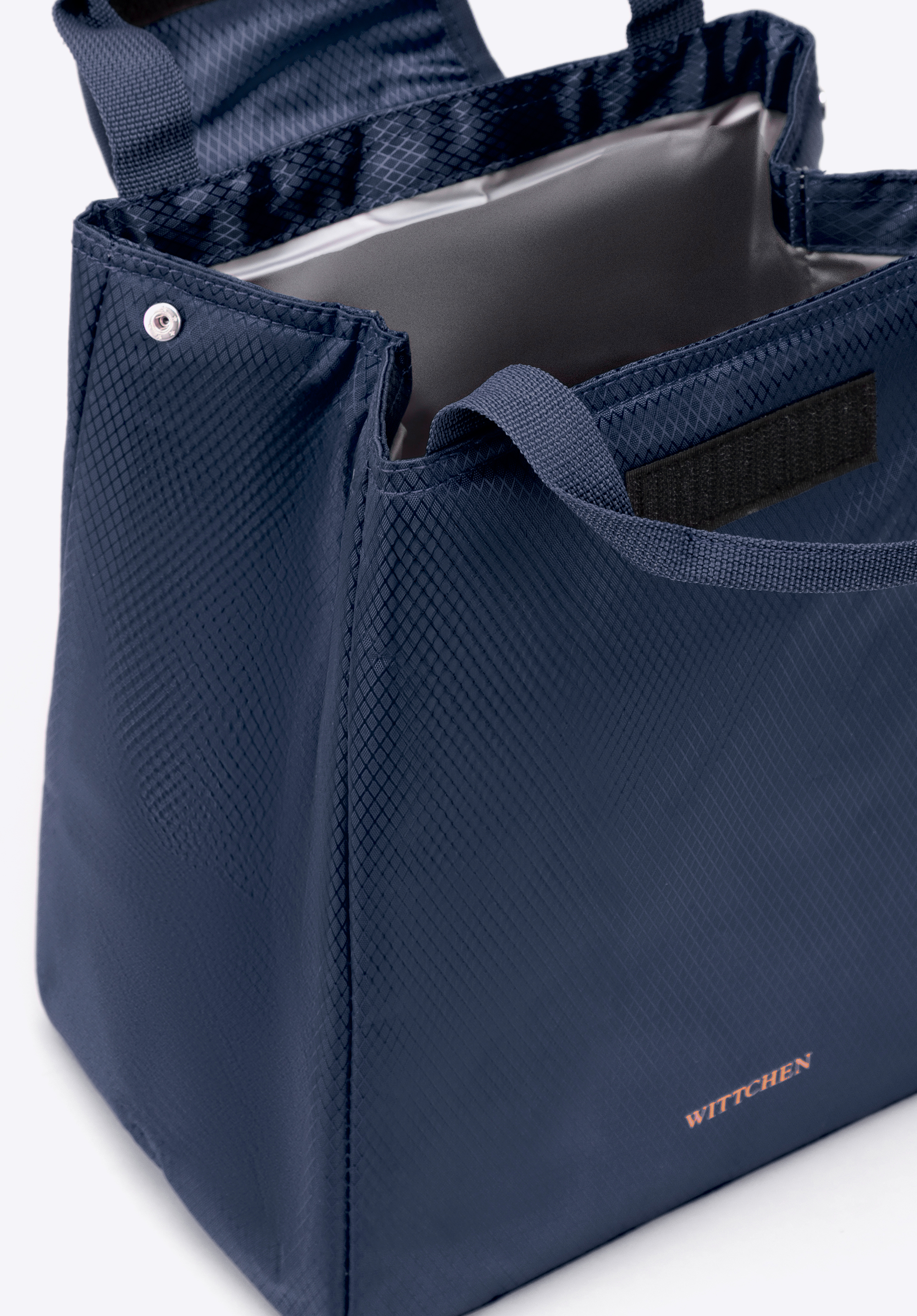 Entdecken Sie eine Lunchbag, die nicht nur Ihre Erwartungen erfüllt, sondern sie in jeder Hinsicht übertrifft! Dieses Produkt vereint Zuverlässigkeit und stilvolles Design, das auf Ihre Bequemlichkeit und Funktionalität ausgerichtet ist. Die Tasche wird mit einem Klettverschluss und Metalldruckknöpfen an den Seiten geschlossen, um nicht nur eine sichere Aufbewahrung, sondern auch einen einfachen Zugriff auf den Inhalt zu gewährleisten. Zwei bequeme Griffe erleichtern das Tragen, und ein Innenfutter mit wärmeisolierenden Eigenschaften sorgt dafür, dass der Inhalt der Tasche vor Temperaturschwankungen geschützt ist.