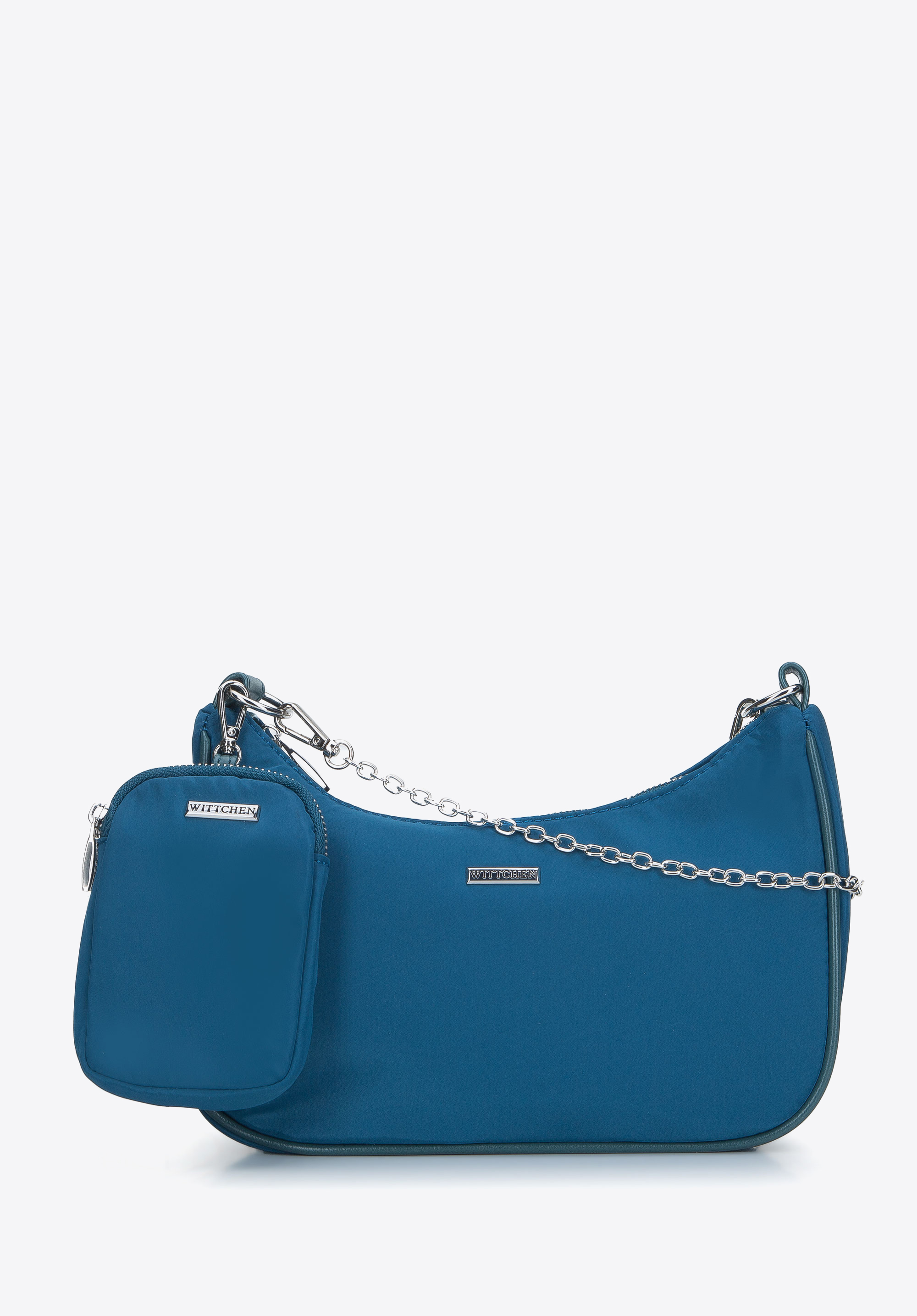 Die kleine Damen Umhängetasche in Form eines Hörnchens nimmt Bezug auf die neuesten Trends, aber in einer originellen Ausführung. Die Tasche ist aus hochwertigem, dickem Stoff mit leichtem Glanz und Einsätzen aus ökologischem Leder genäht. Die modische Form, sowie die kleine Kette mit Karabinerhaken und das aufsteckbare Täschchen werden viele Blicke auf sich ziehen. Sie können kleine Kosmetika in den Beutel stecken, ihn abnehmen und separat verwenden oder in der Tasche aufbewahren. Die Briefträgertasche hingegen bietet Platz für das Nötigste: Geldbörse, Sonnenbrille, Schlüssel und Taschentücher. Vervollständigen Sie Ihren Frühlings-/Sommer-Look mit einer Stofftasche aus Horn, zu der Sie gerne greifen werden.