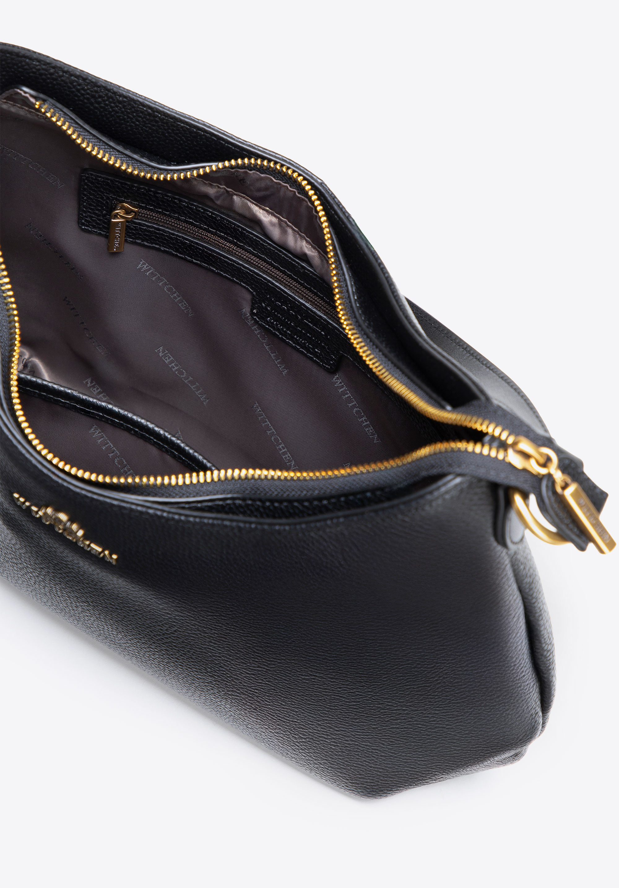 - Durchdachte Organisation: Im Inneren der Tasche befinden sich zwei Taschen – eine mit Reißverschluss und eine offene, was die Organisation von Zubehör, Schlüsseln oder einer Brieftasche erleichtert.
