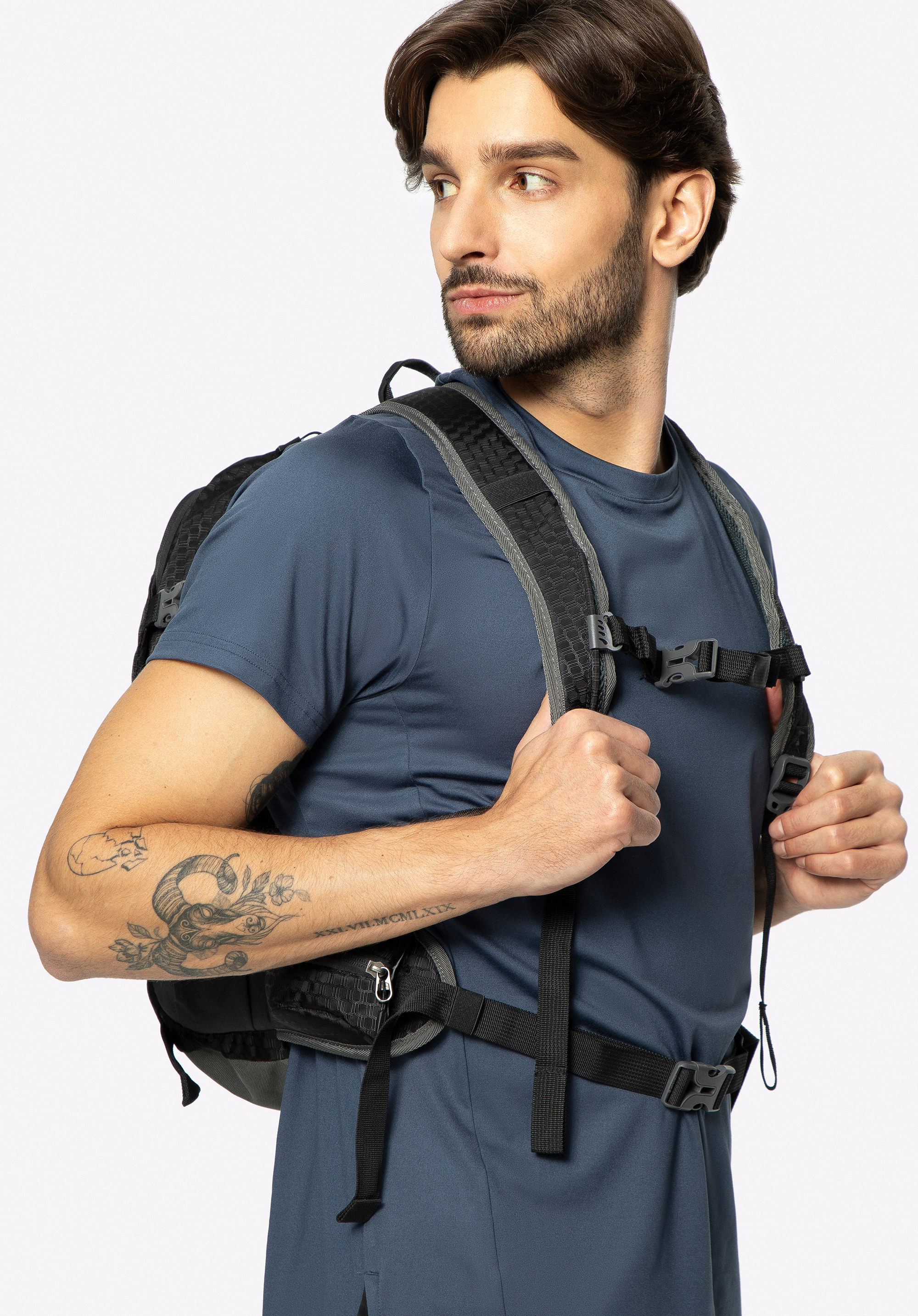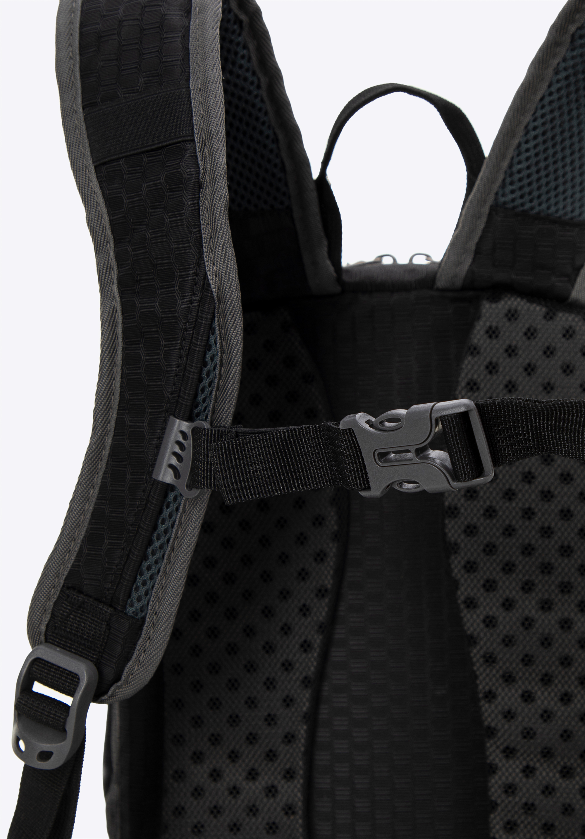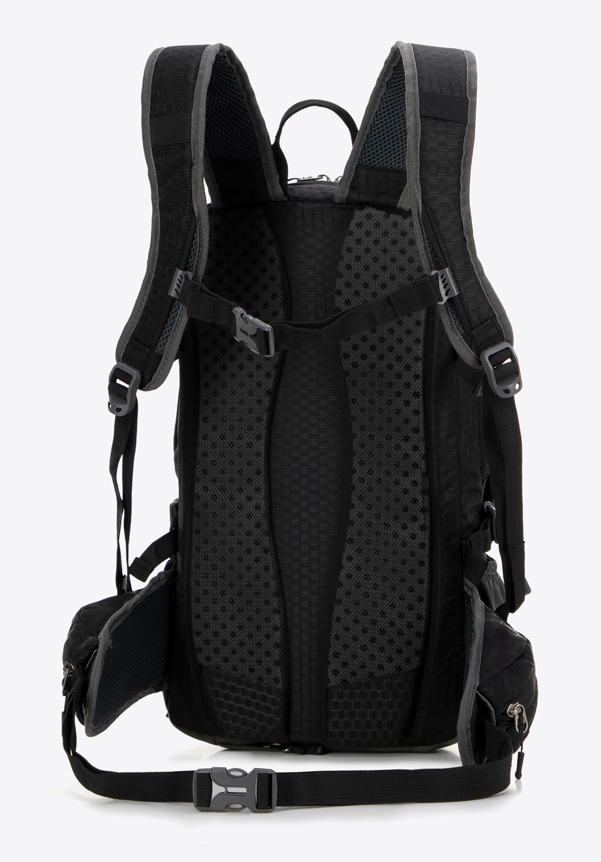 - Verstellbare Schultergurte: Die mit Struktur-Mesh gepolsterten Gurte passen sich Ihren Bedürfnissen an, während das Mesh für Belüftung sorgt und so den Komfort auch bei langen Wanderungen erhöht.