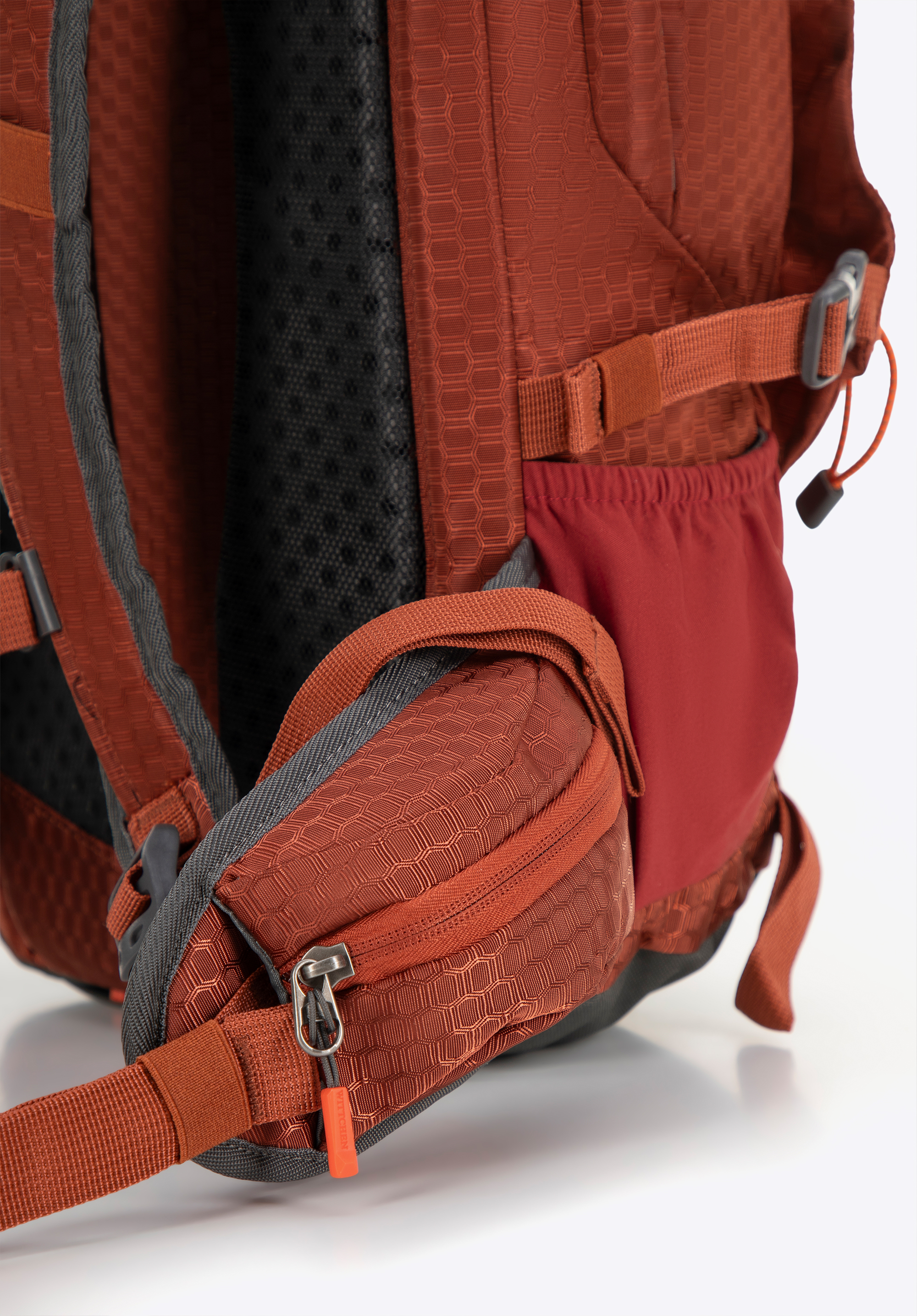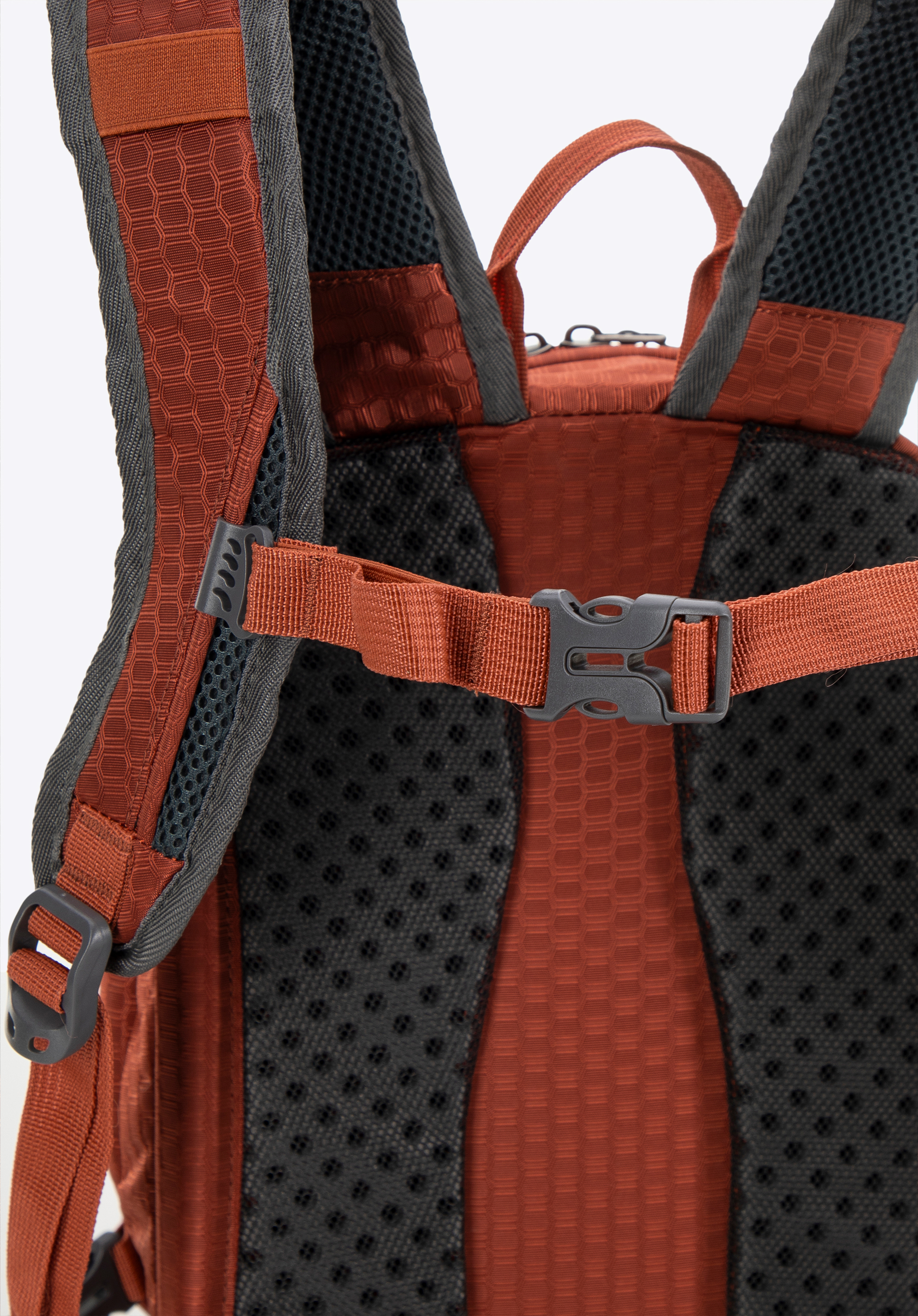 - Verstellbare Schultergurte: Die mit Struktur-Mesh gepolsterten Gurte passen sich Ihren Bedürfnissen an, während das Mesh für Belüftung sorgt und so den Komfort auch bei langen Wanderungen erhöht.