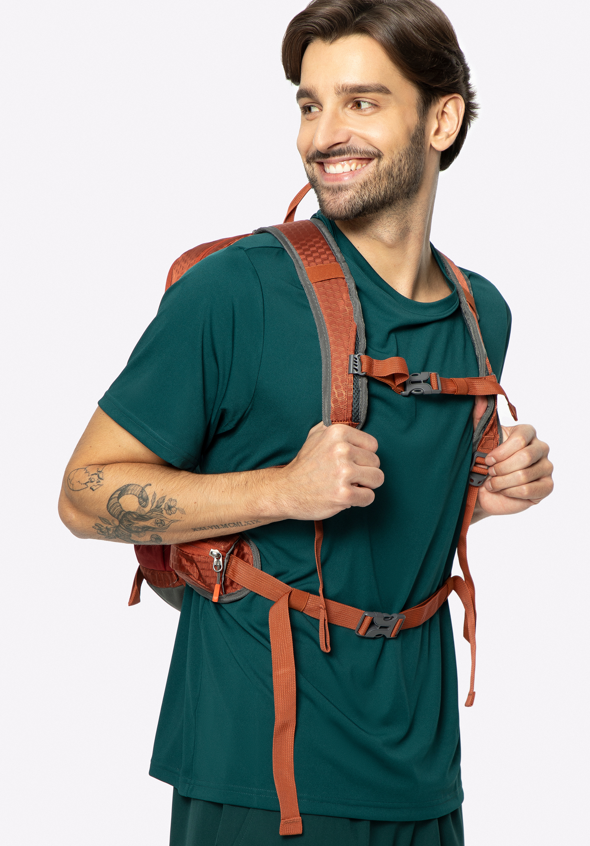 - Brustgurt (22–42 cm) und Hüftgurt (48–144 cm): Geben dem Rucksack Stabilität und verteilen das Gewicht gleichmäßig, sodass Rücken und Schultern weniger belastet werden. Der Hüftgurt verfügt über zusätzliche Taschen, die sich perfekt für kleine wichtige Dinge wie Schlüssel oder ein Telefon eignen.