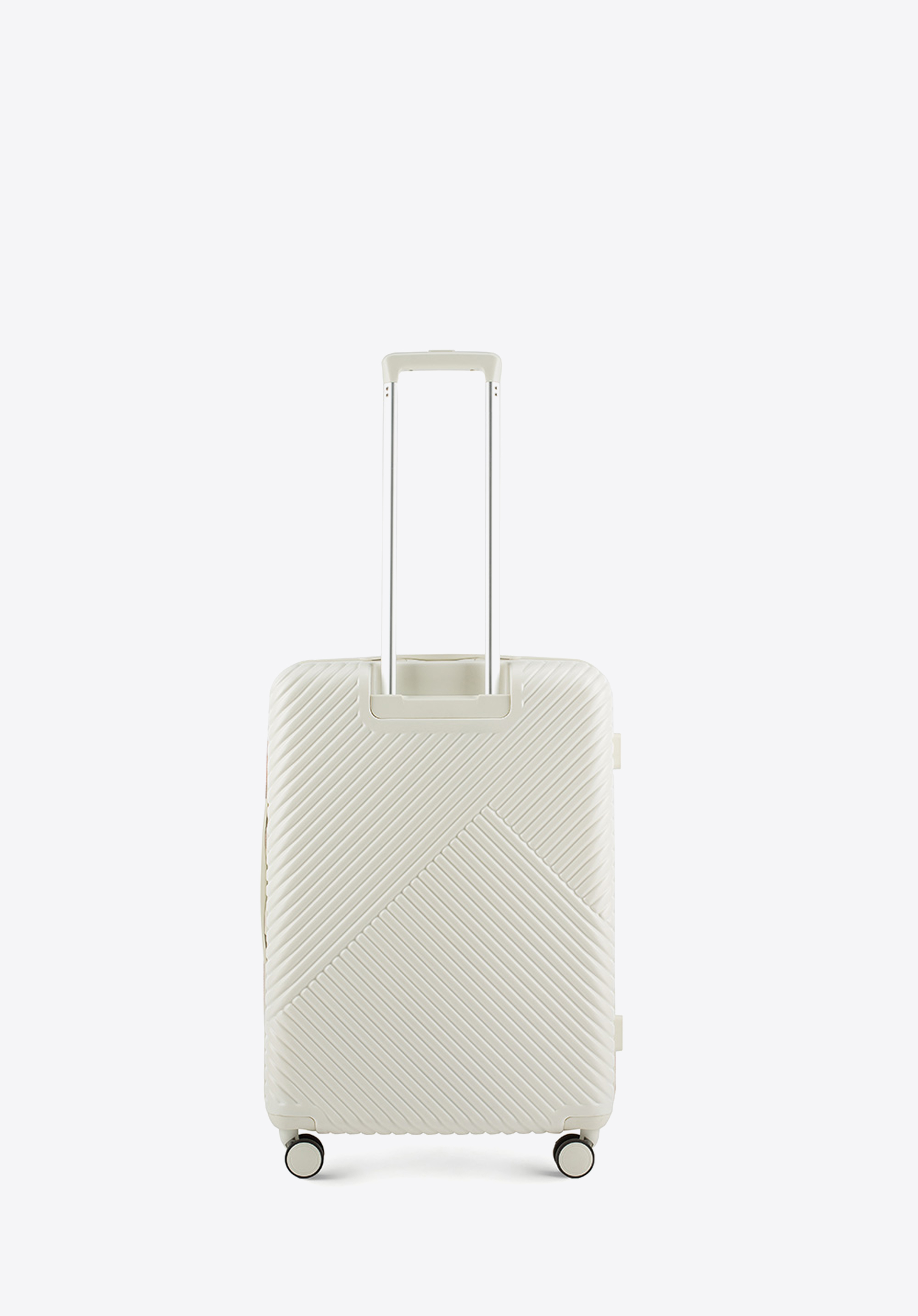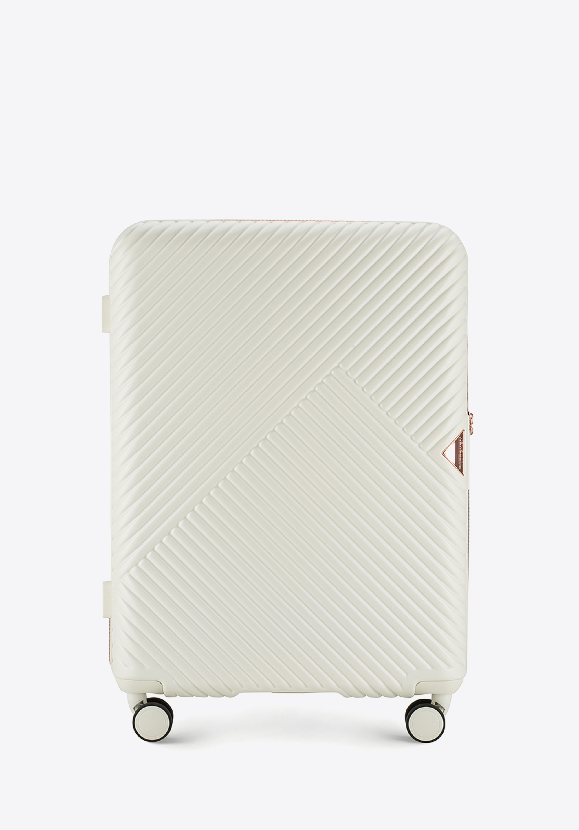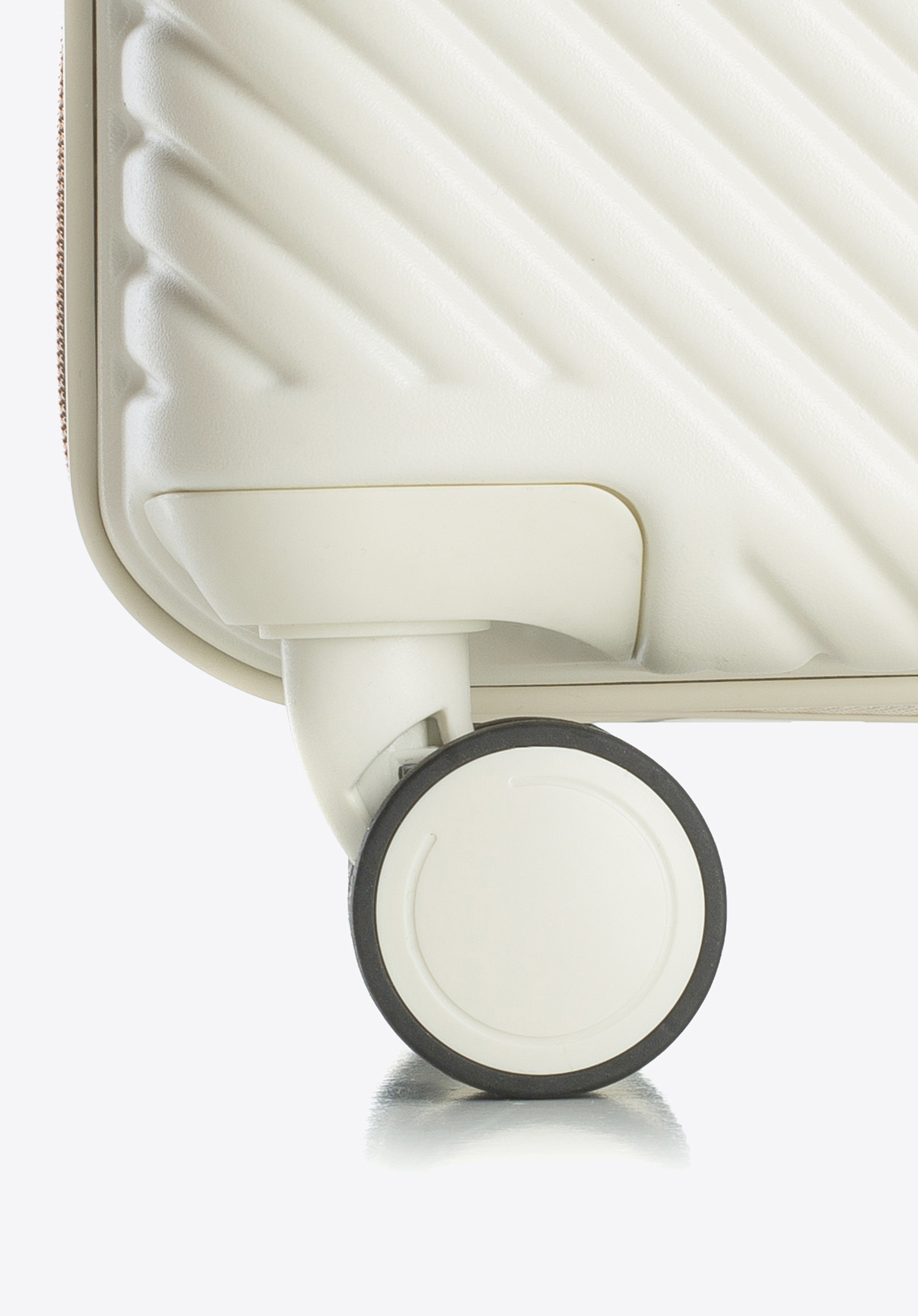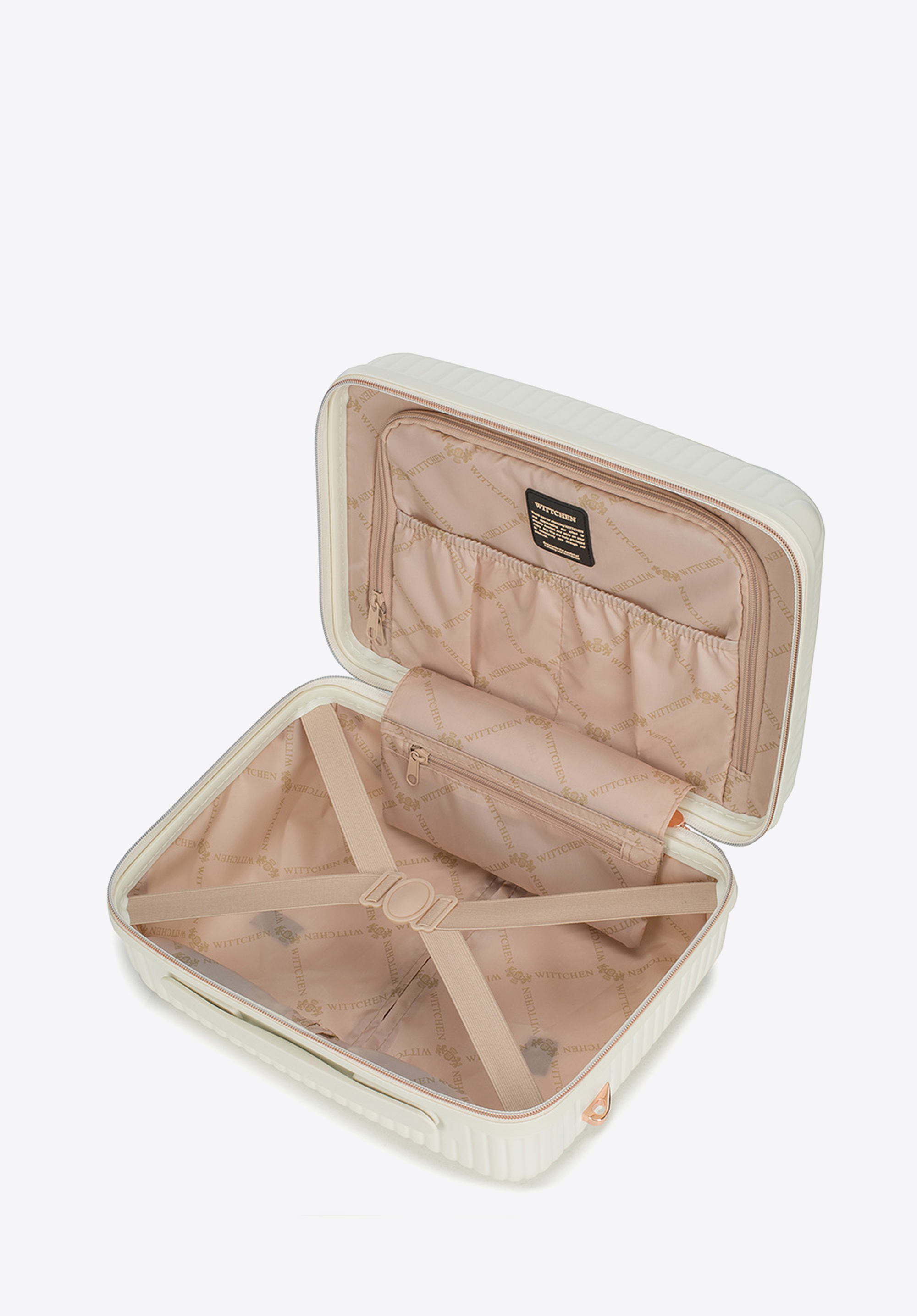Das Kofferset wird aus Polycarbonat mit matter Oberfläche hergestellt. Die eleganten Koffer mit glänzenden Elementen in Roségold verfügen über vier Doppelrollen aus ABS-Material mit elastischer Beschichtung und einen geräumigen Innenraum, der mit beigefarbenem Futter mit WITTCHEN-Logo bedeckt wird. Dieses Modell ist in drei Farbtönen erhältlich: Weiß, Schwarz und Rosa.
