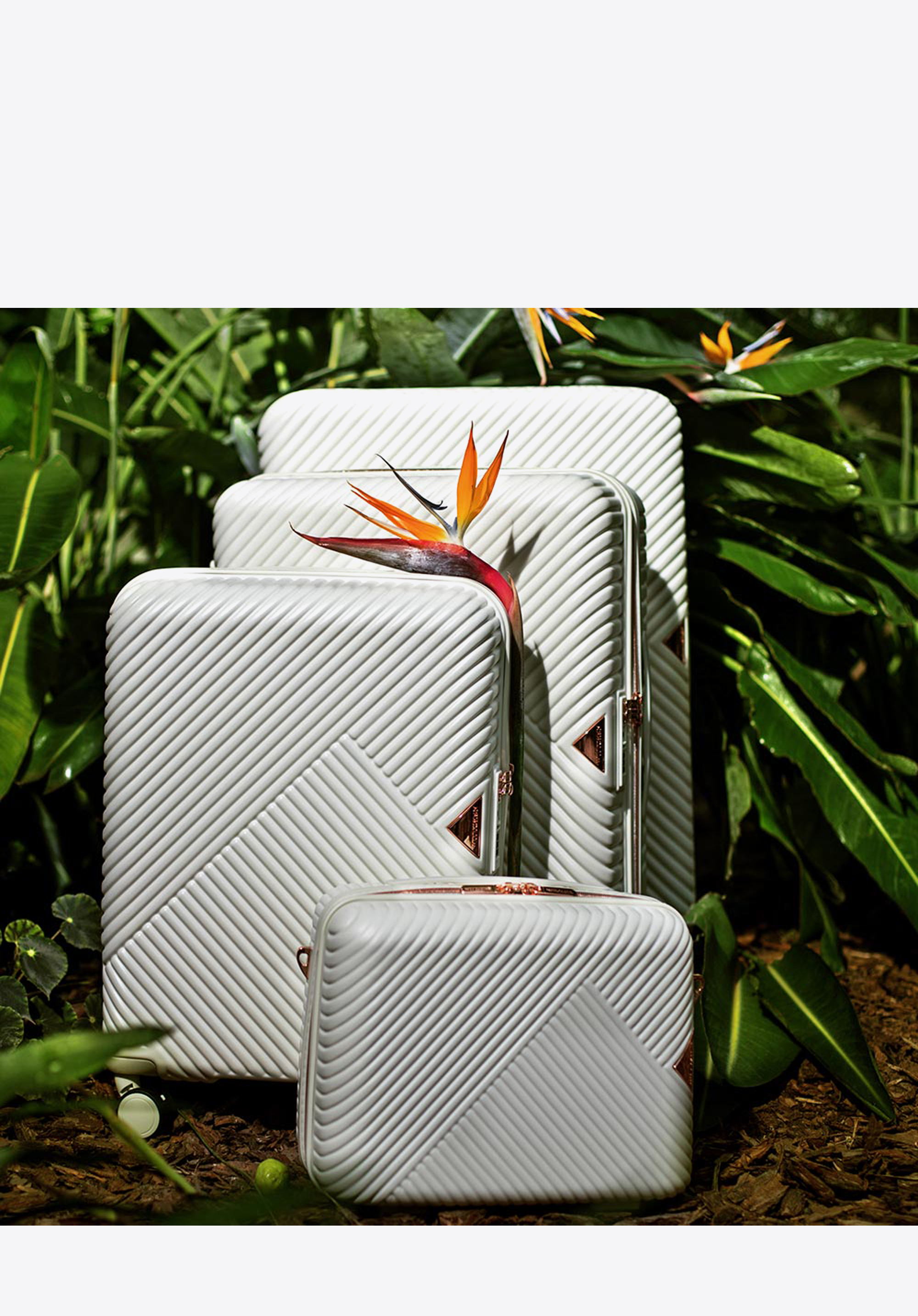 Unser Tipp: Dank der deutlichen Elemente und des geometrischen Musters gewinnen die Koffer einen originellen und modernen Charakter.