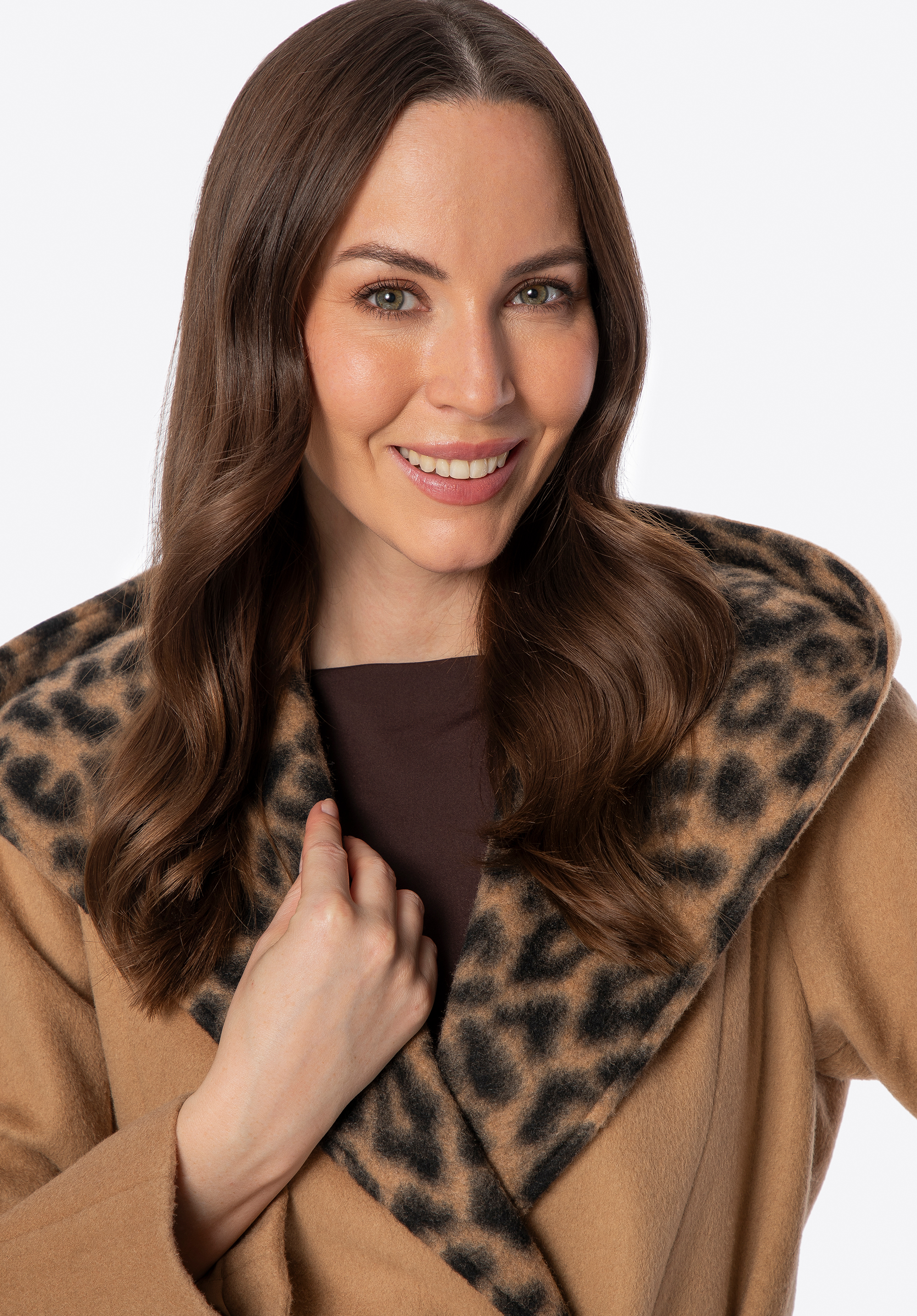 Ein Klassiker modern interpretiert – Langer Damenmantel mit Kapuze und Gürtel